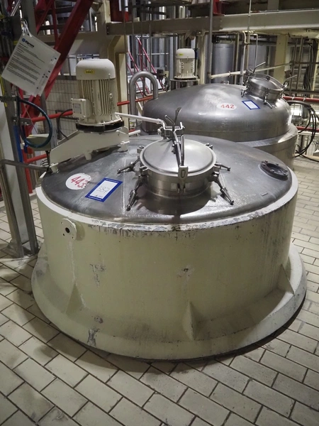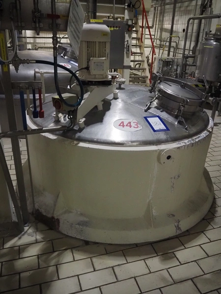 S/s double jacketed tank with agitator, tank dimensions: Ø 1900 mm x 2700 mm.