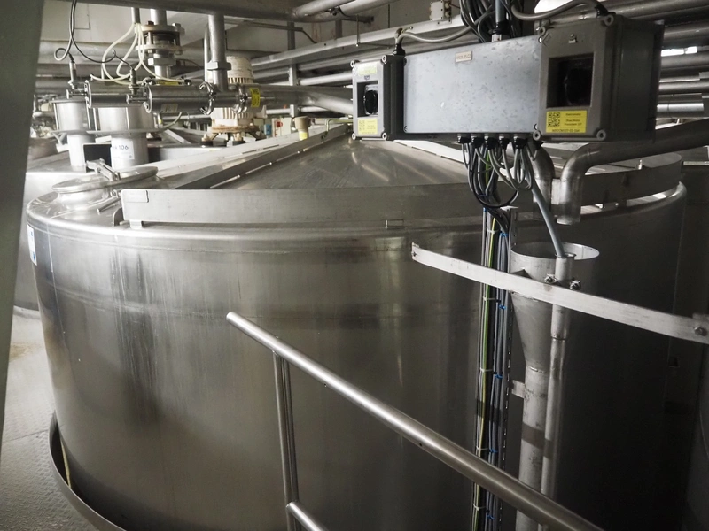S/s double jacketed tank with agitator, dimensions: ø 3200 mm x 5000 mm.