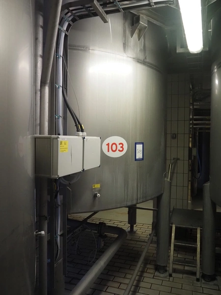 S/s double jacketed tank with agitator, dimensions: ø 3200 mm x 5000 mm.