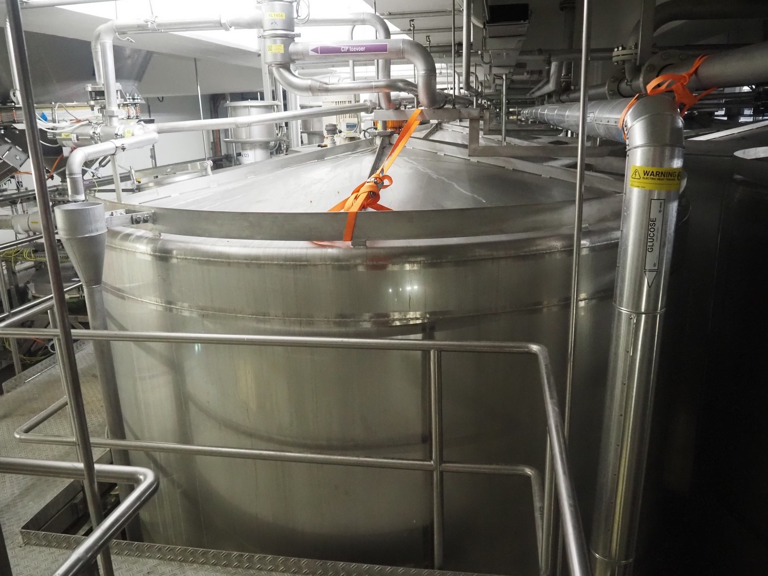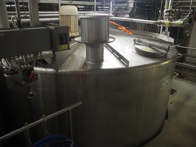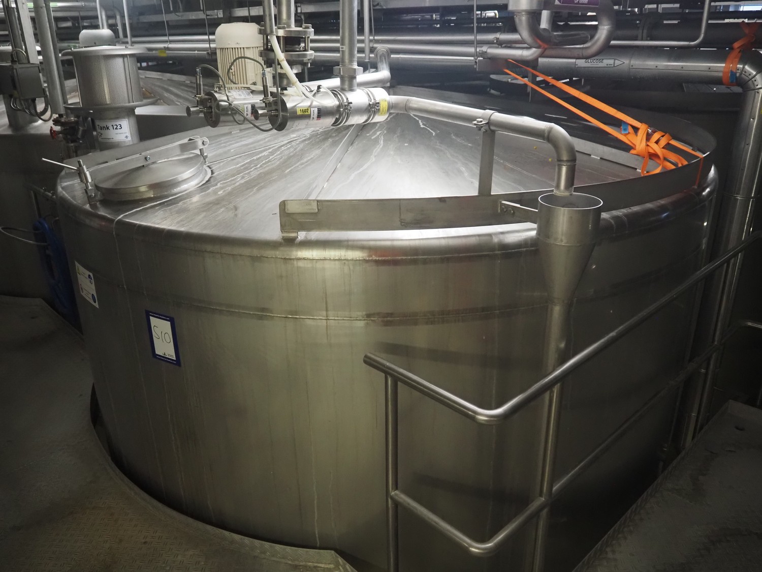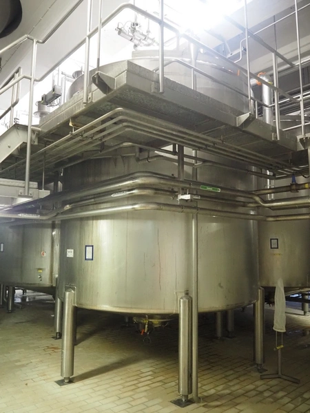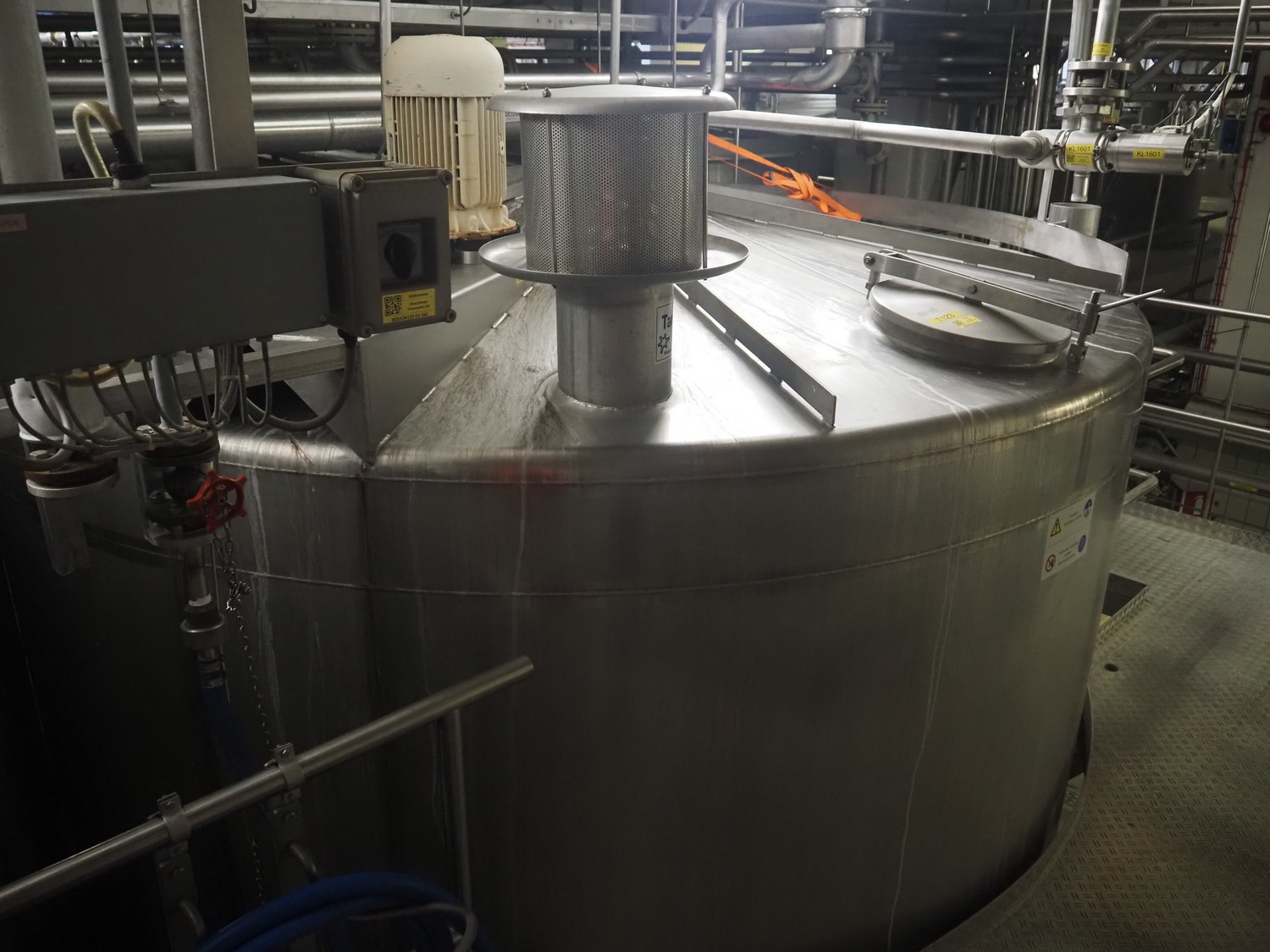 S/s double jacketed tank with agitator, dimensions: ø 3200 mm x 5000 mm.