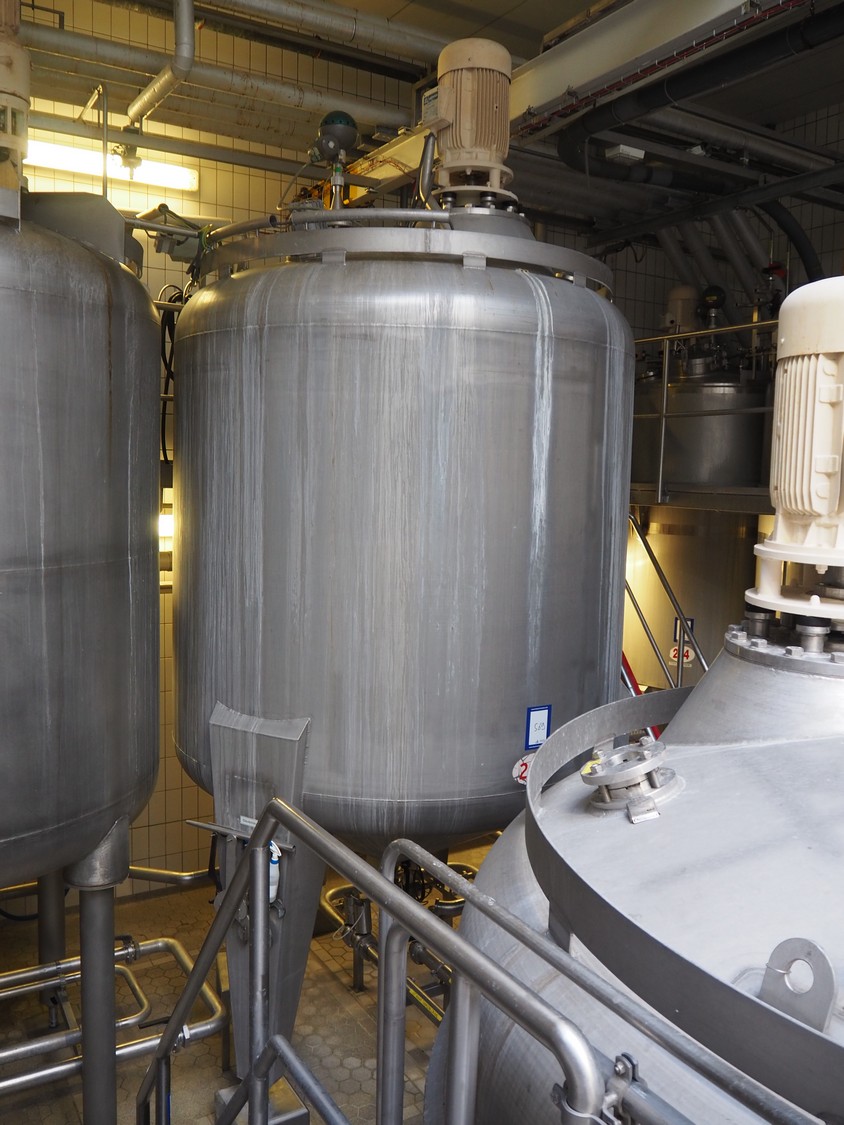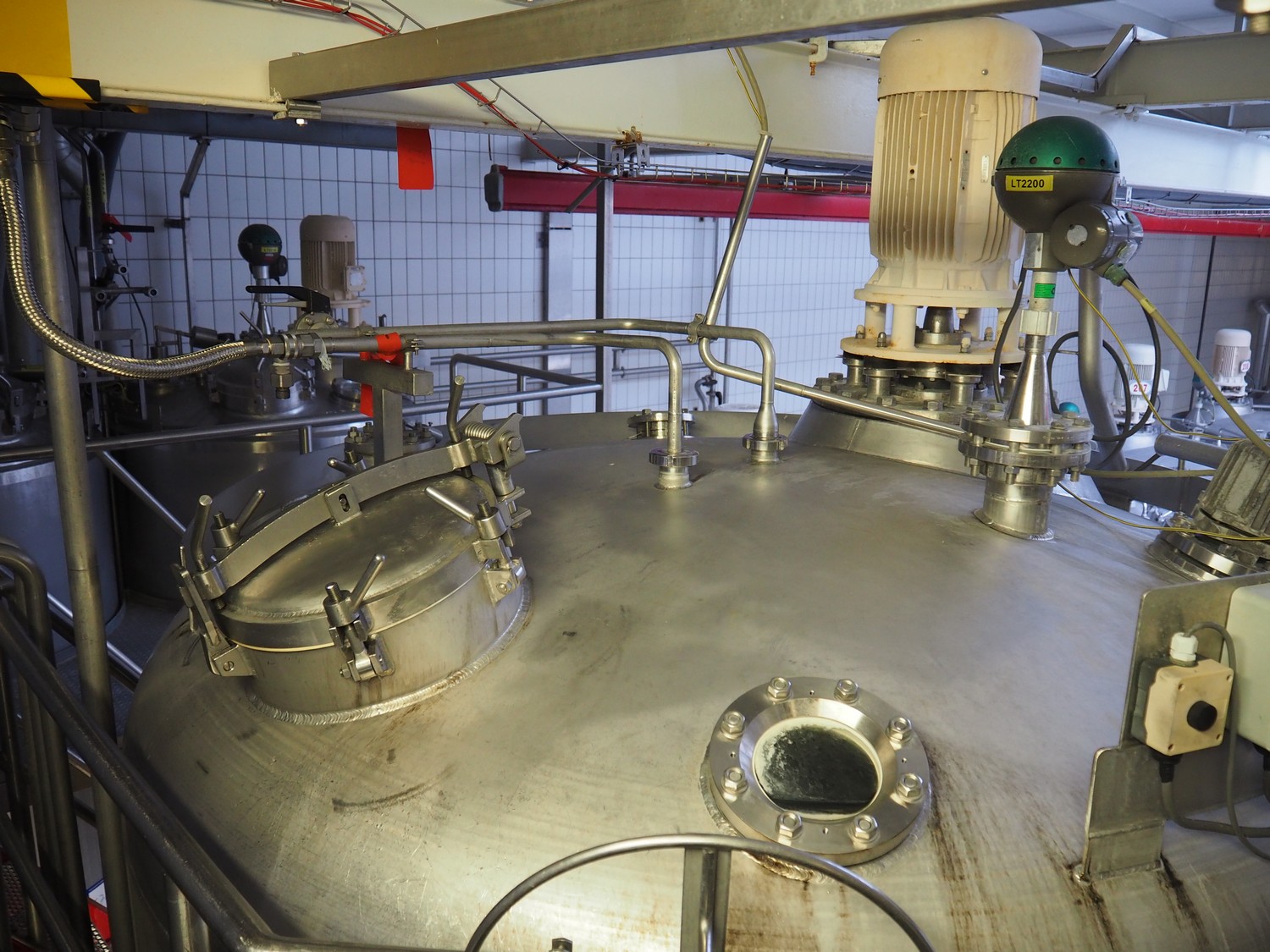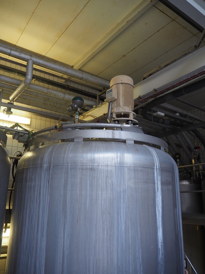 Holvrieka s/s double jacketed tank with Jongia agitator, dimensions: ø 2400 mm x 5300 mm.