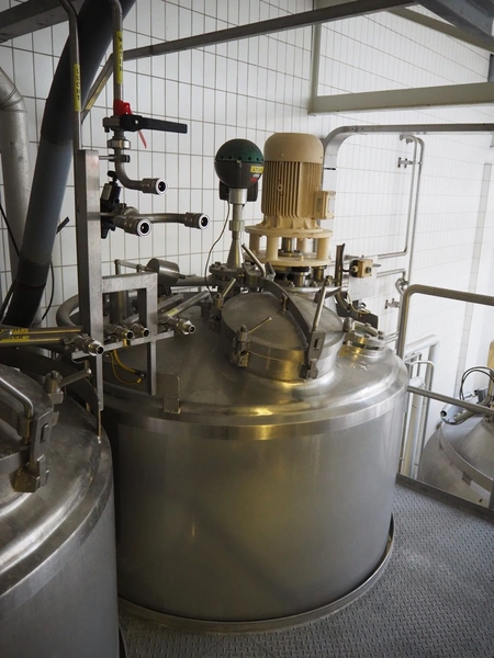 S/s double jacketed tank with Jongia agitator, dimensions: ø 1520 mm x 4700 mm.