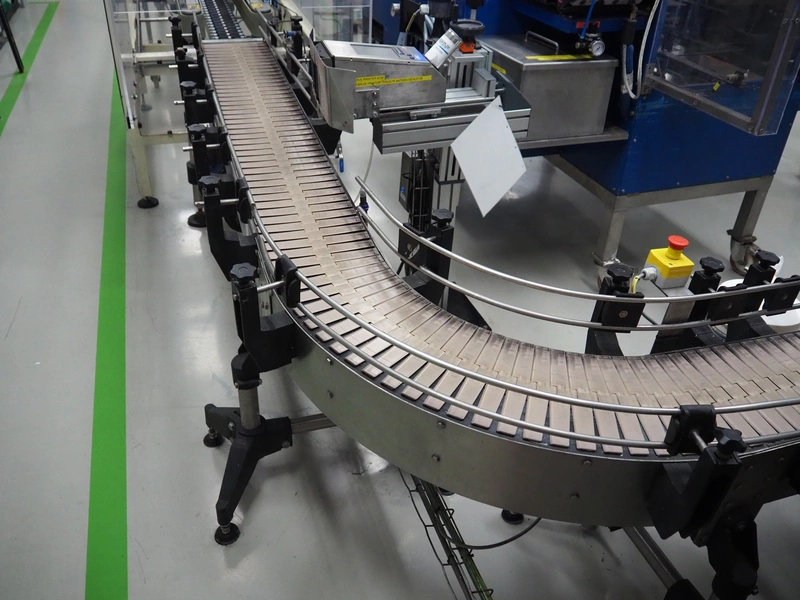 90° curve conveyor, plastic belt, belt width: 255 mm, total dimensions: 1400 mm x 2500 mm x 830 mm.