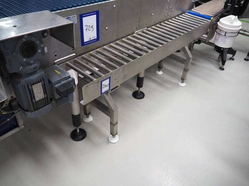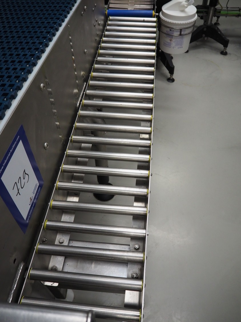 Roller conveyor, s/s rollers, roller width: 250 mm, total dimensions: 1500 mm x 270 mm x 640 mm.