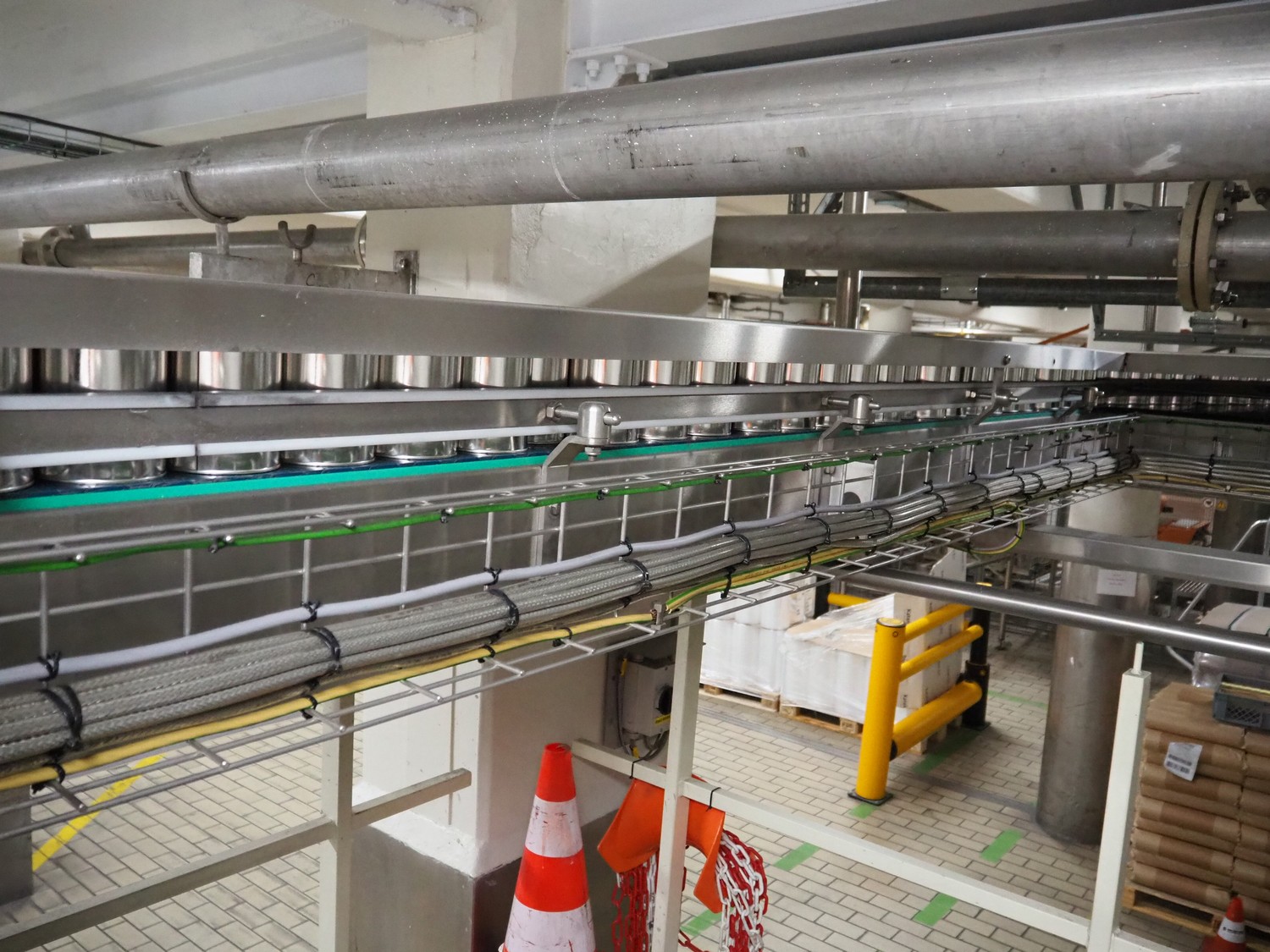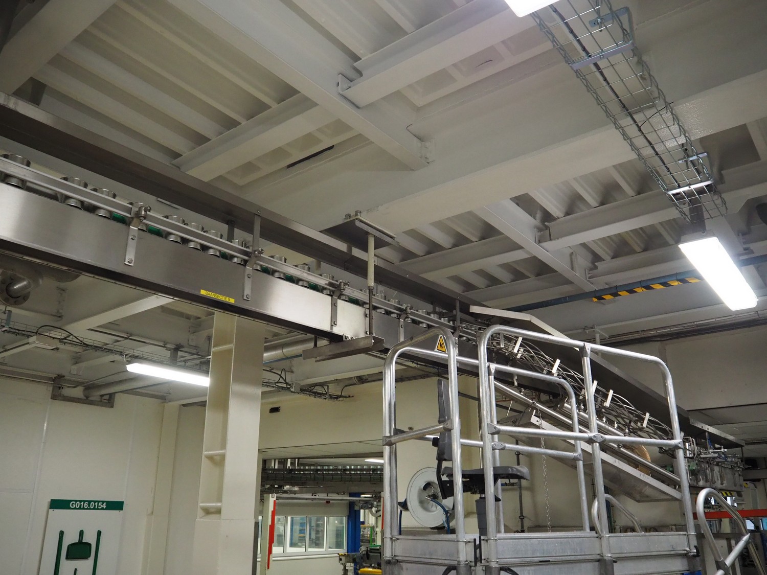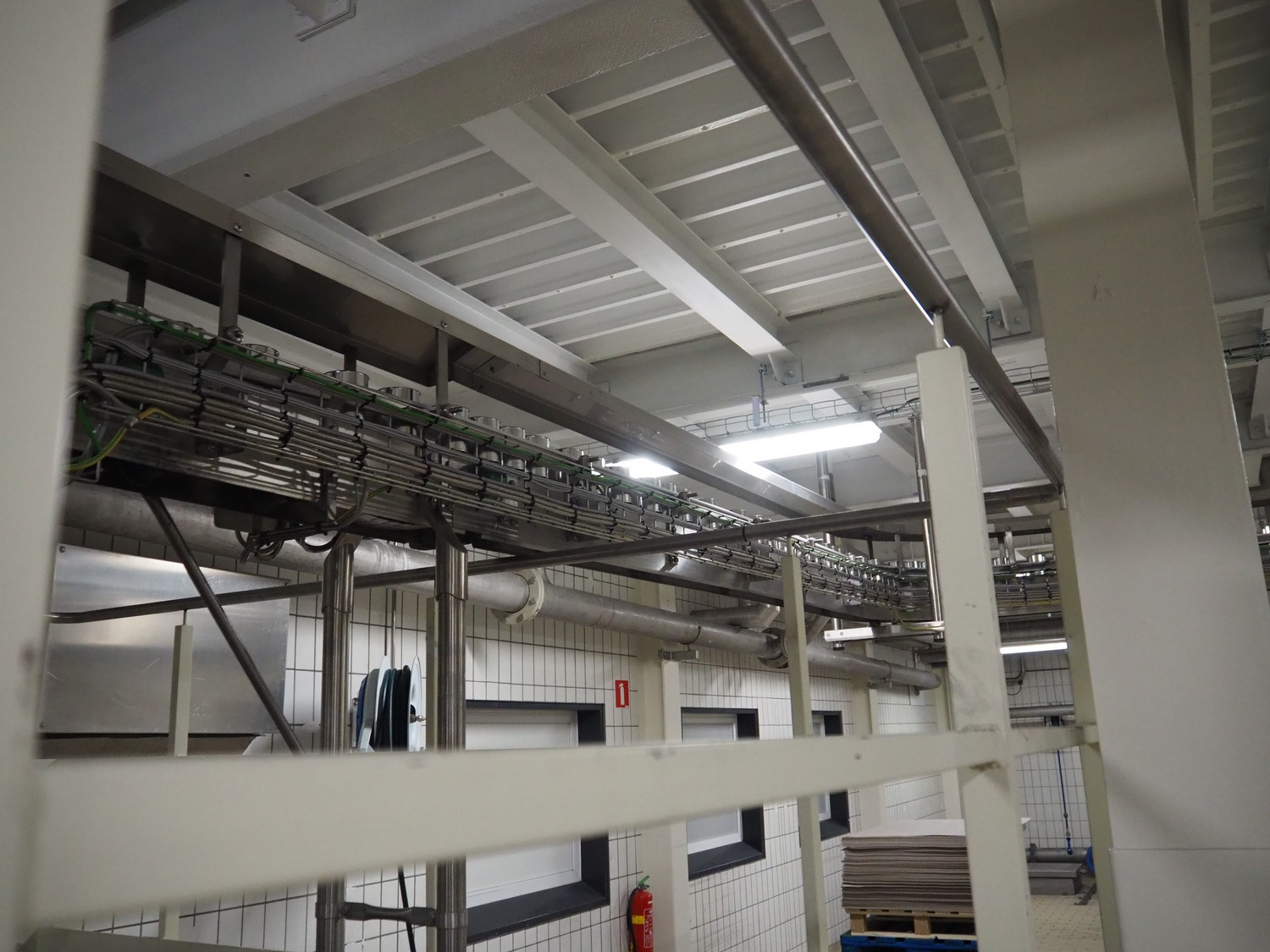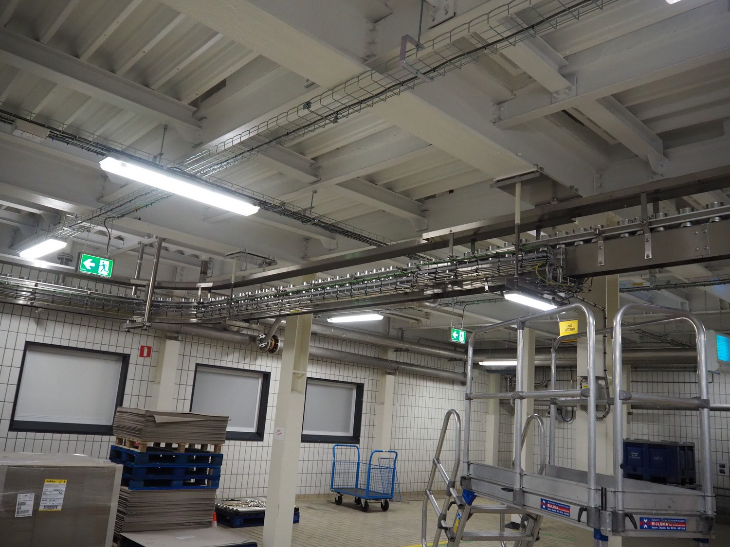 Uitert transport system with plastic belt, belt width: 340 mm and 80 mm, total dimensions: 6000 mm x 1300 mm x 3150 mm and 21000 mm x 14500 mm x 3150 mm.