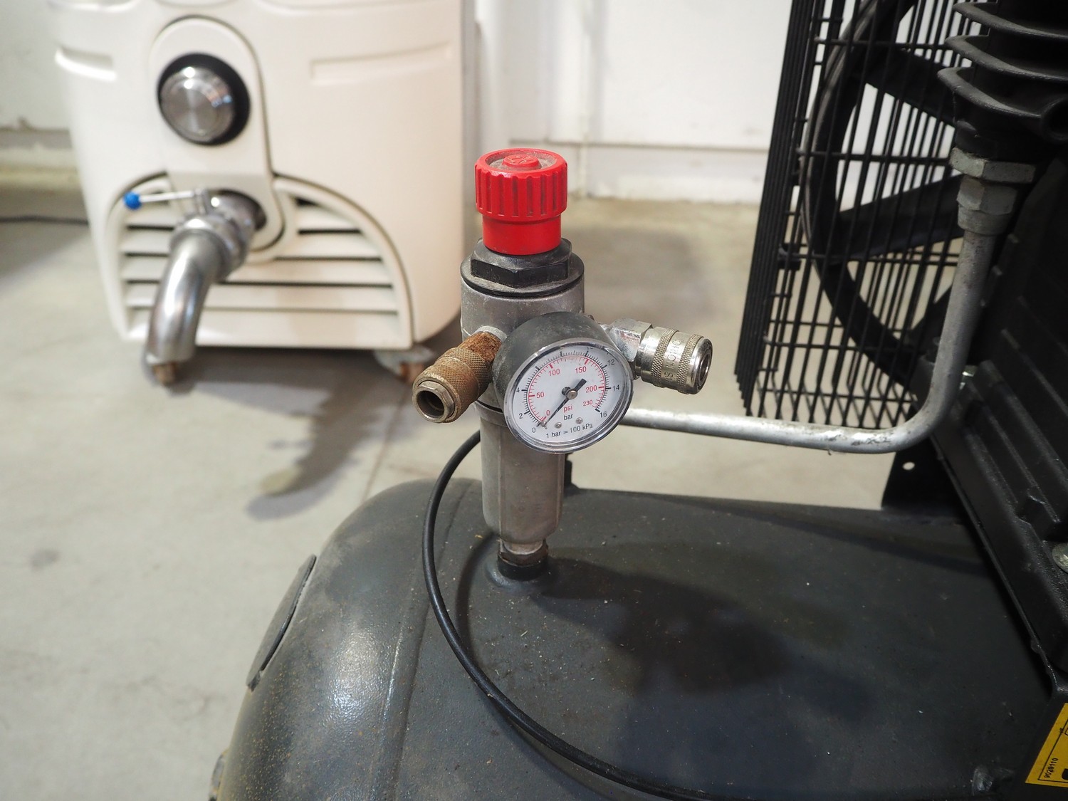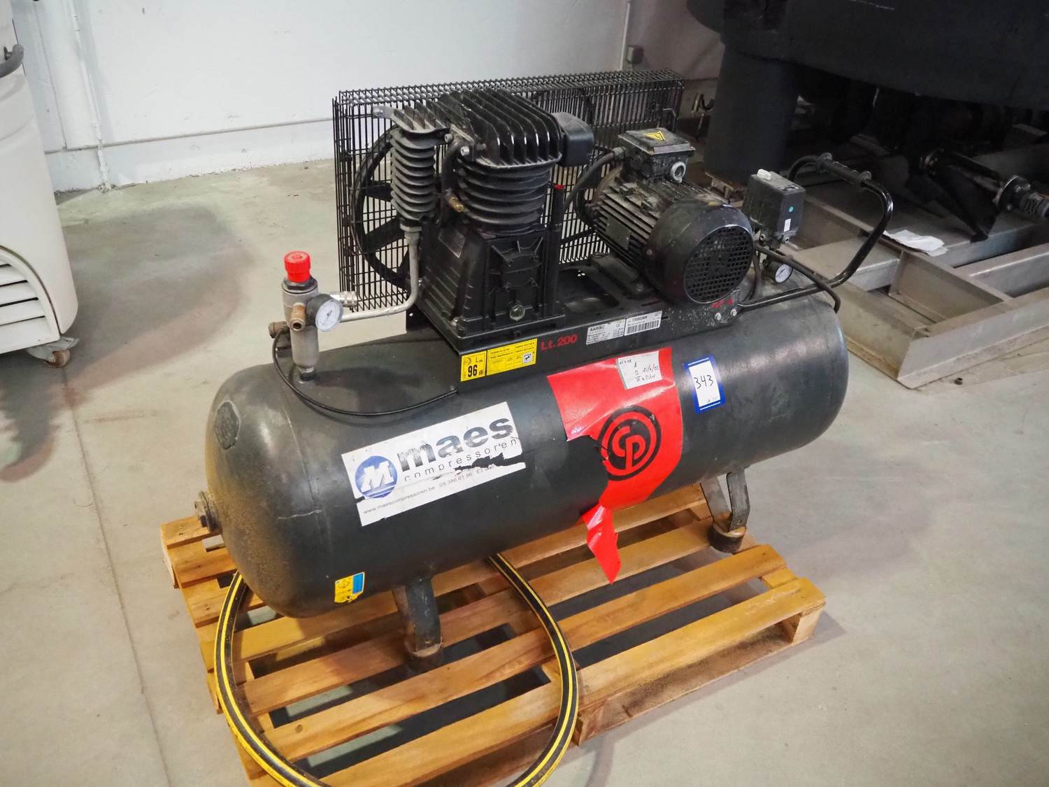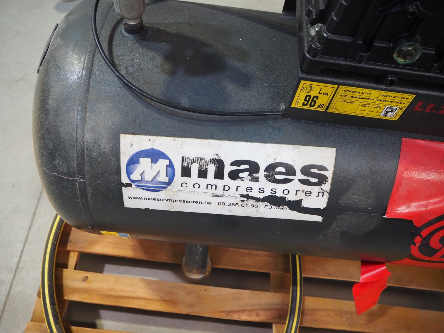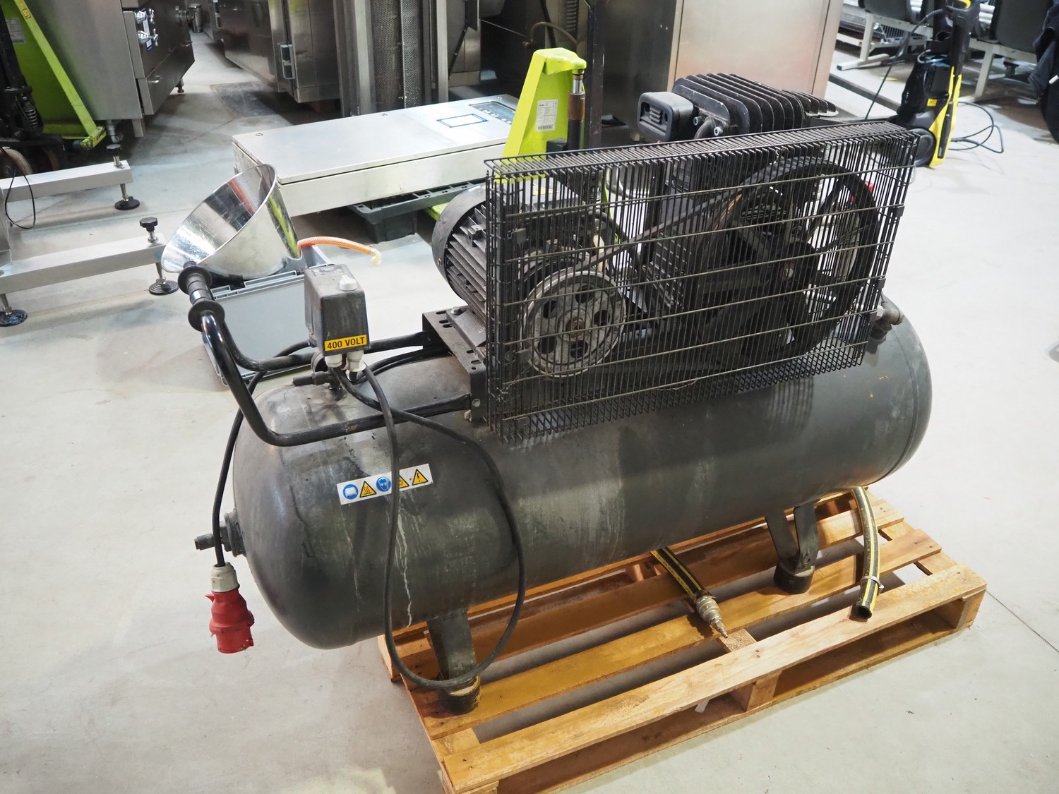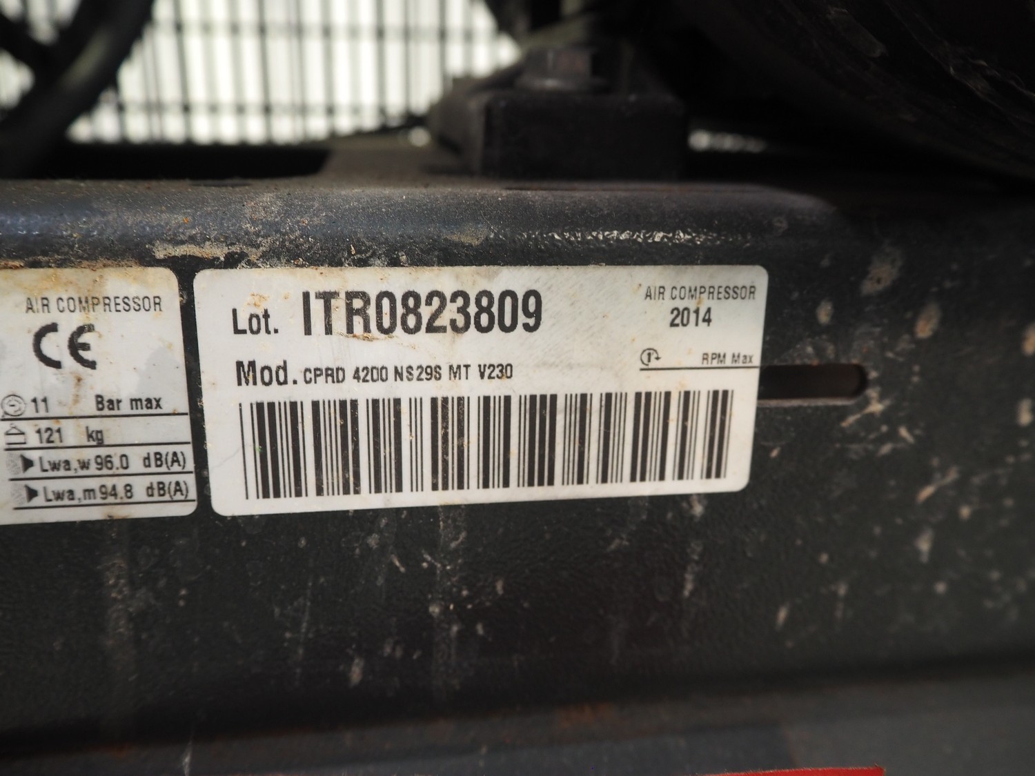 Aariac air compressor, model: CPRD 4200 N 8298 MT V230, year of construction: 2014, 230 V, 3 Ph, 50 Hz, 3 kW, maximum pressure: 11 bar, weight: 121 kg, dimensions: 1550 mm x 500 mm x 950 mm.