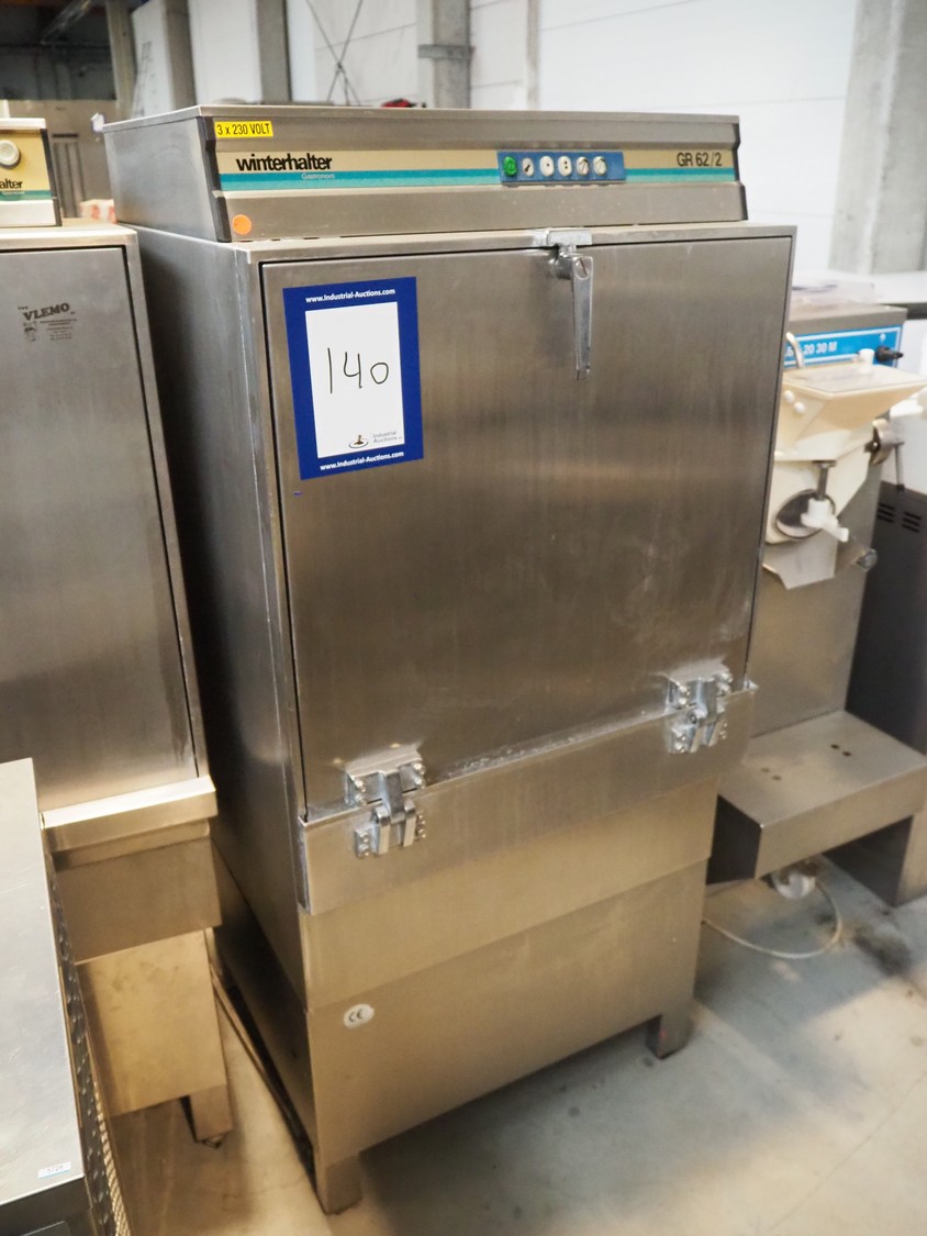 Winterhalter dishwasher, type: GR 62/2, serial number: 376 004, 230 V, 50 Hz, 27 A, 10 kW, dimensions: 600 mm x 660 mm x 840 mm.