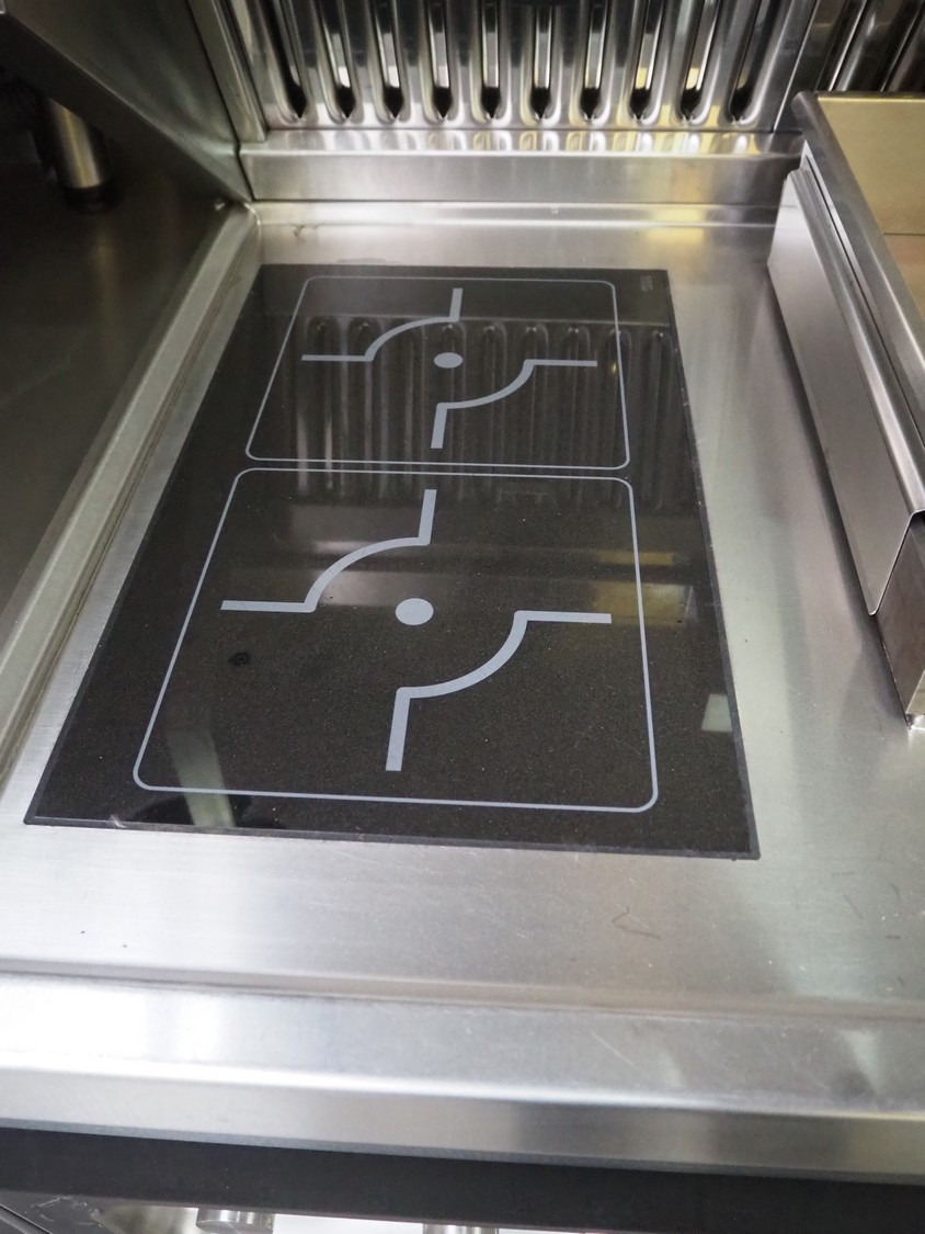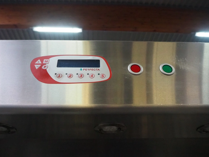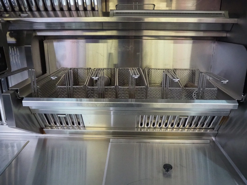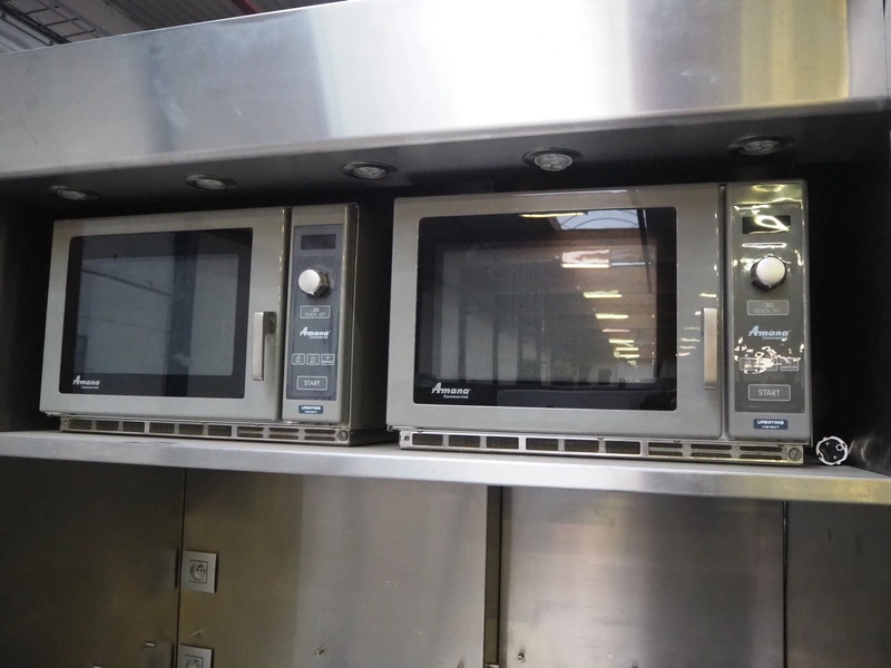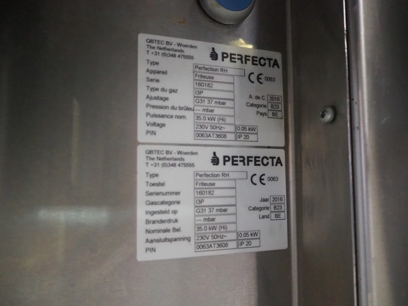 Perfecta fryer, type: Perfection RH, serial number: 160182, year of construction: 2016, 400 V, 105 kW, fuel: natural gas, dimensions: 5800 mm x 950 mm x 2150 mm, including Bartscher steamer, type: KT061, 400 V, 6.9 kW and 2 Amana microwaves, model: URS511MB.