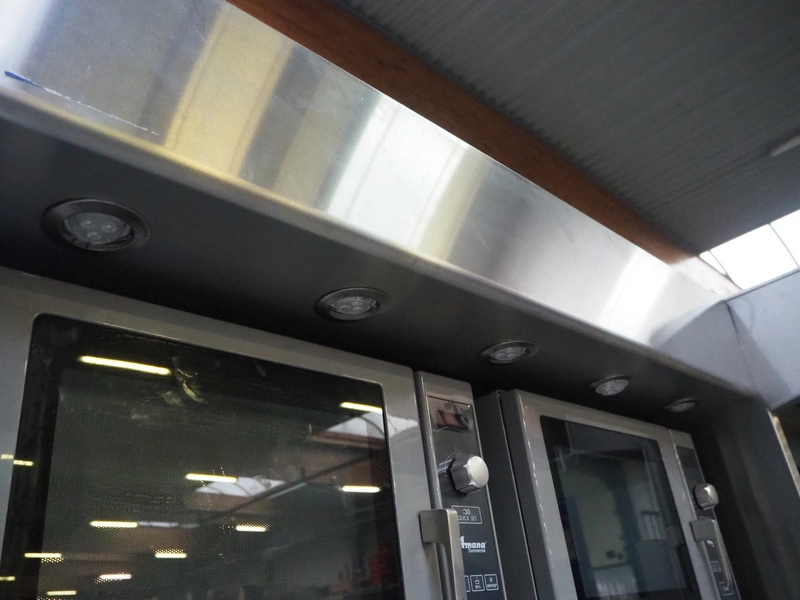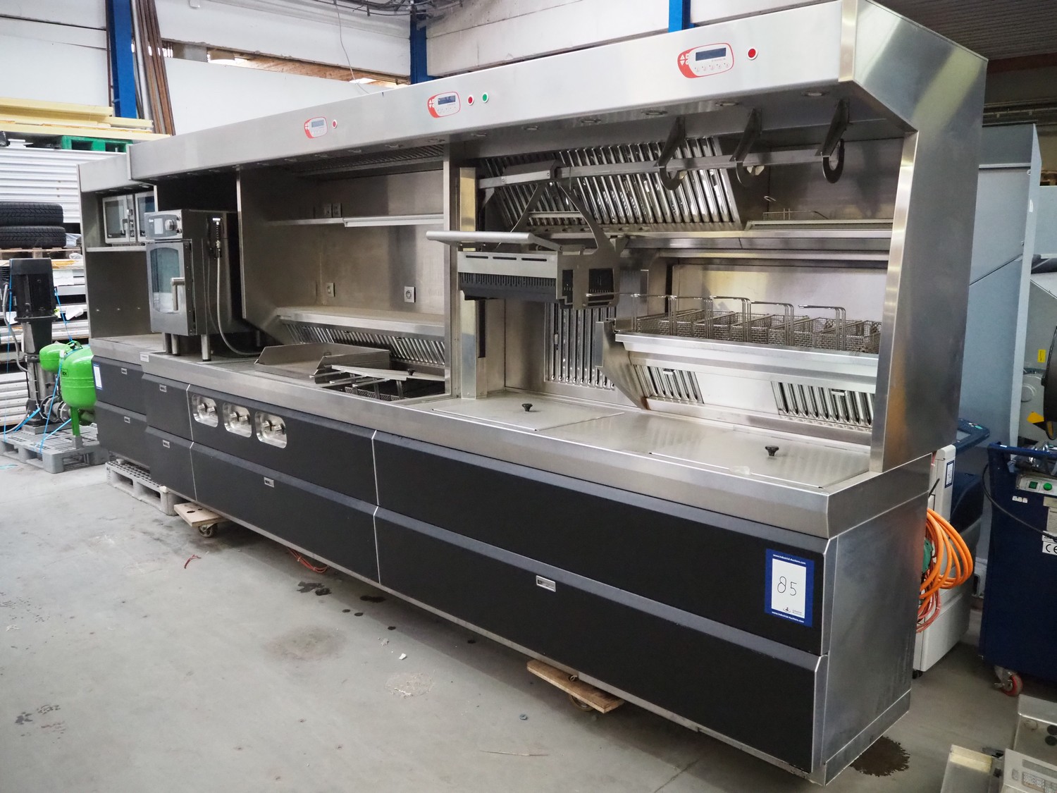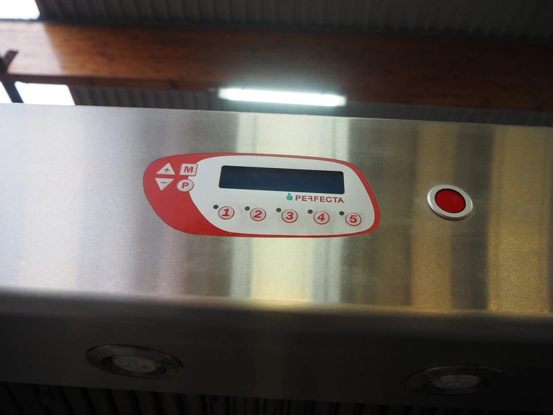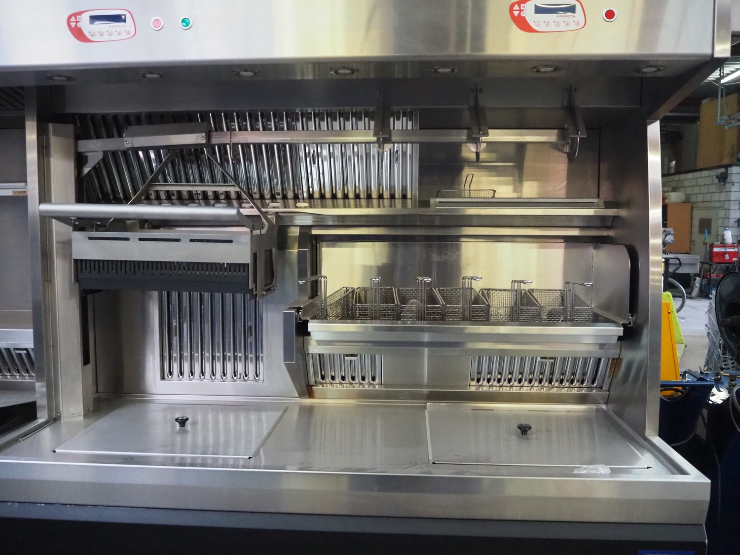 Perfecta fryer, type: Perfection RH, serial number: 160182, year of construction: 2016, 400 V, 105 kW, fuel: natural gas, dimensions: 5800 mm x 950 mm x 2150 mm, including Bartscher steamer, type: KT061, 400 V, 6.9 kW and 2 Amana microwaves, model: URS511MB.