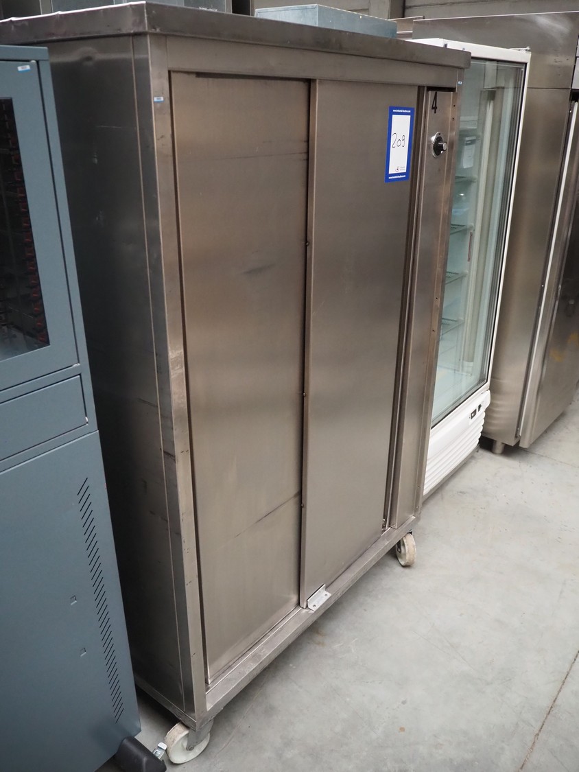 S/s mobile heated trolley, 2 floors, floor dimensions: (2x) 1000 mm x 450 mm, total dimensions: 1200 mm x 720 mm x 1800 mm.