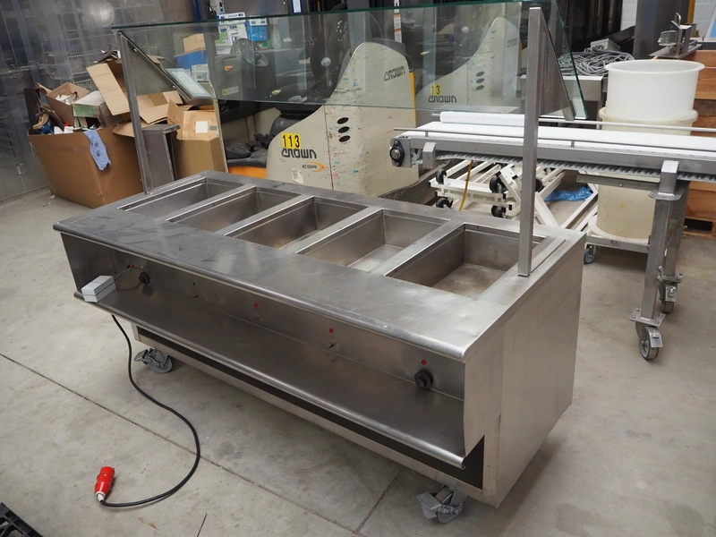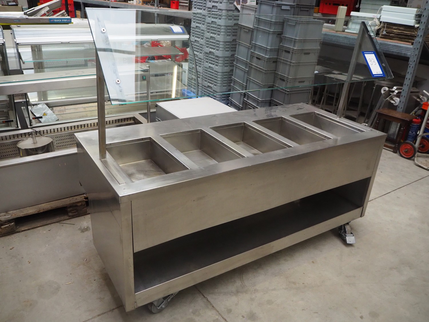 Bayonne mobile heated counter, 380 V, 3 Ph, 7500 W, inside dimensions: (5x) 500 mm x 300 mm x 155 mm, total dimensions: 2000 mm x 900 mm x 1700,