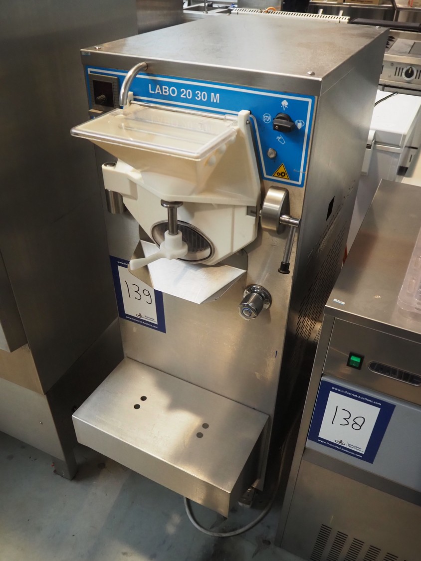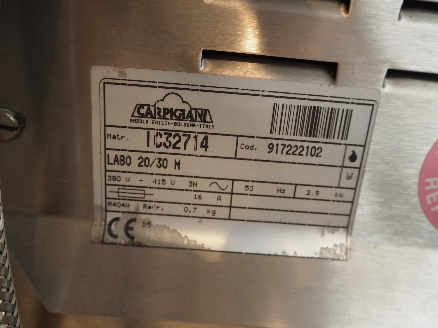 Carpigiani mobile ice cream machine, model: LABO 20/30 M, serial number: IC32714, 380-415 V, 3 Ph, 50 Hz, 16 A, 2.9 kW, refrigerant: R404a, 0.7 kg, dimensions: 870 mm x 460 mm x 1280 mm.