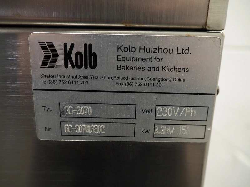 Kolb Huizhou Ltd oven, type: GC-3070, serial number: GC-307013202, 230 V, 15 A, 3.3 kW, inside dimensions: 330 mm x 300 mm x 130 mm, total dimensions: 670 mm x 570 mm x 440 mm.