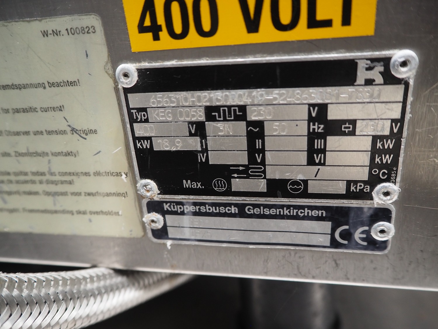 Küpperbusch combi steamer, type: KEG 0058, 230/400 V, 3 Ph, 50 Hz, 10 floors, floor dimensions: (10x) 550 mm x 330 mm, total dimensions: 1030 mm x 850 mm x 1000 mm.