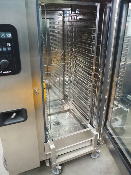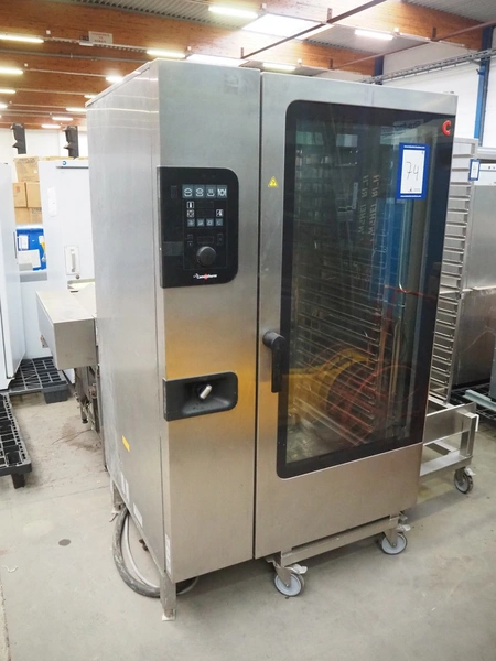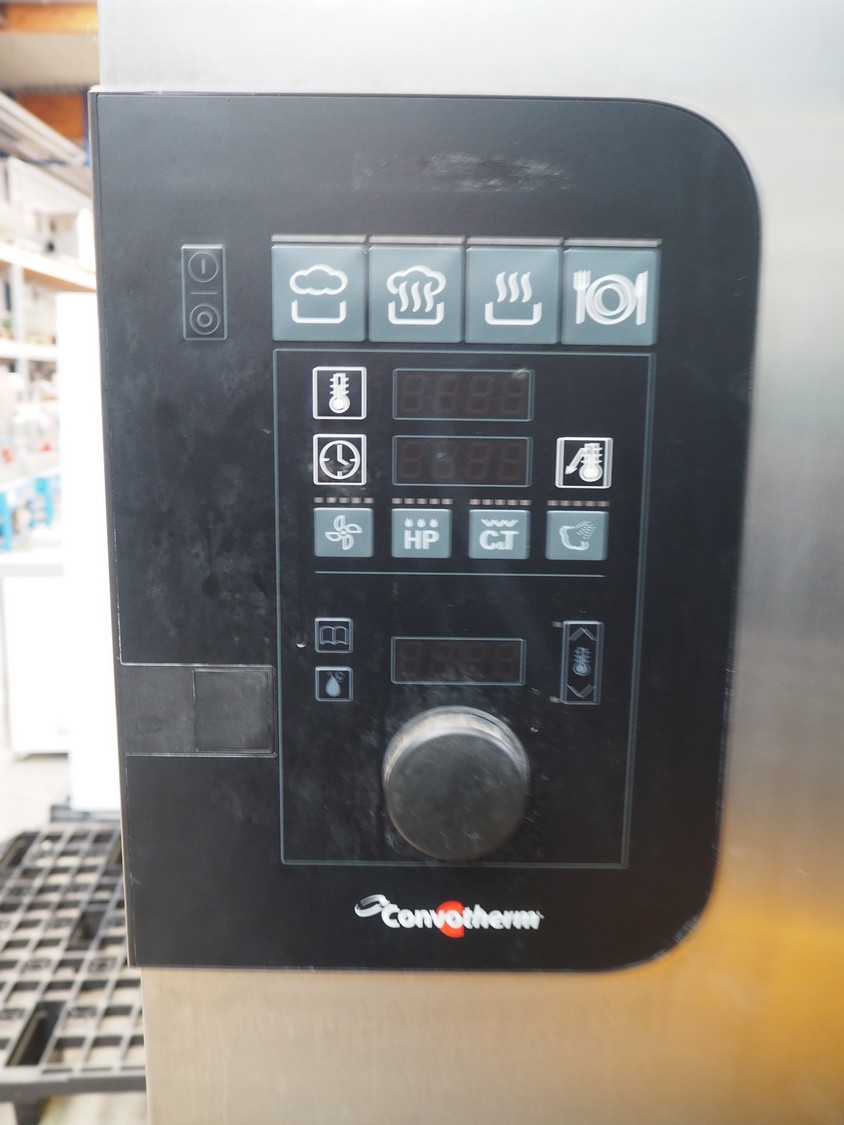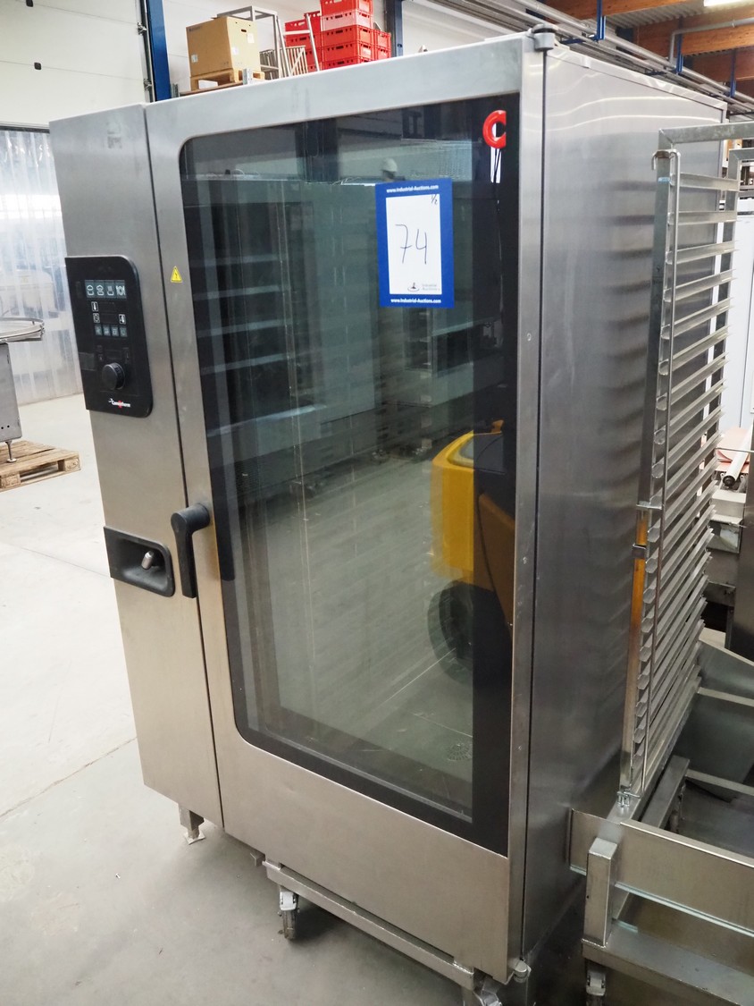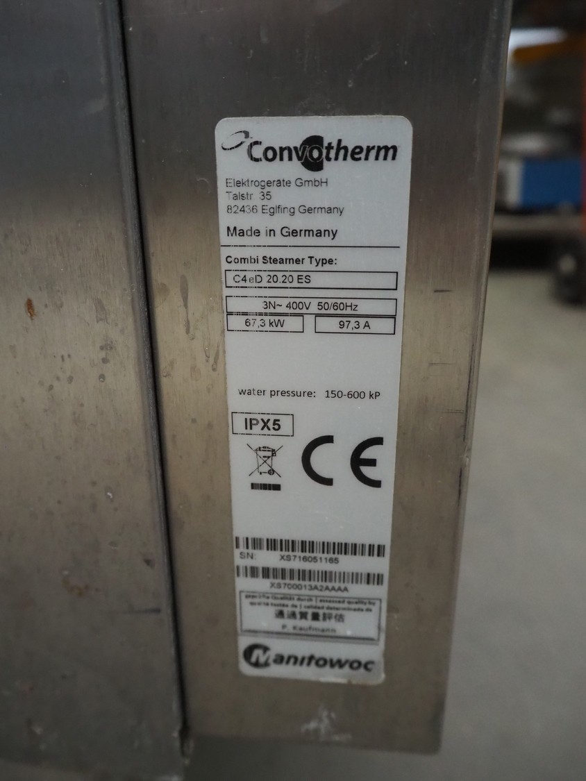 Convotherm combi steamer, type: C4eD20.20 ES, serial number: XS716051165, 400 V, 3Ph, 50/60 Hz, 67.3 kW, 97.3 A, dimensions: 1150 mm x 1100 mm x 1950 mm. Including 2 s/s trolleys, 20 floors each, dimensions floors: (20x) 650 m x 535 mm.