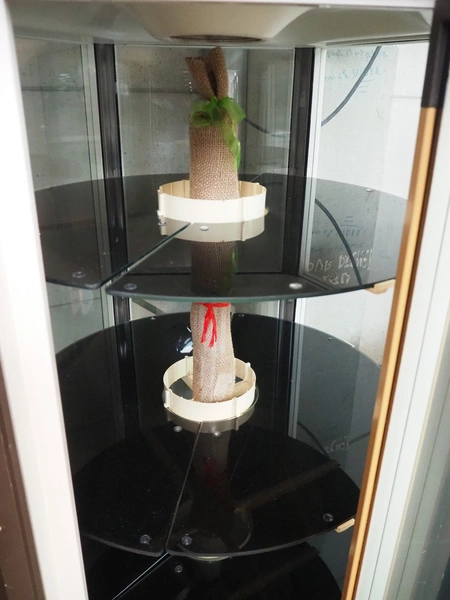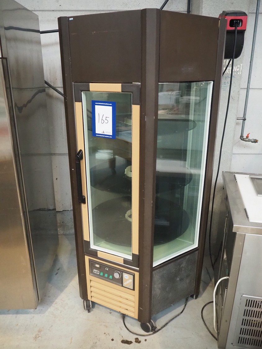 Scaiola mobile refrigerated showcase, 3 floors, floor dimensions: Ø 750 mm, total dimensions: 1050 mm x 1050 mm x 1890 mm.