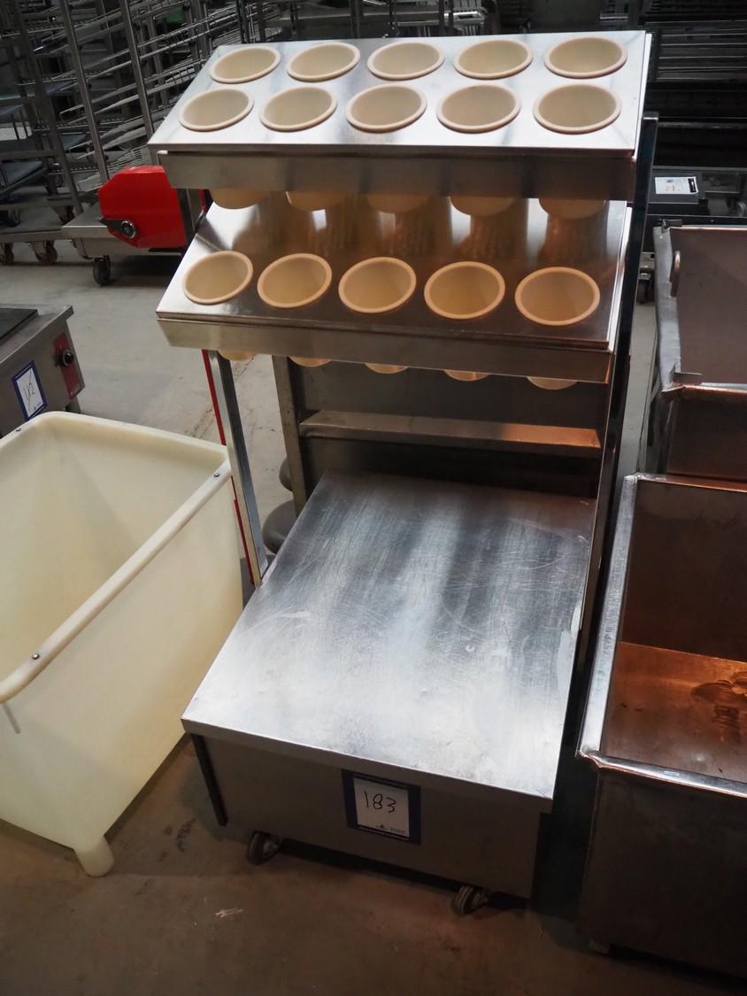 S/s cup holder trolley for 15 cups, cup dimensions: Ø95 mm x 140 mm, dimensions: 800 mm x 705 mm x 1490 mm.