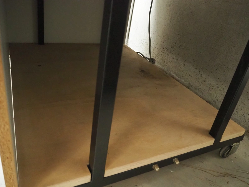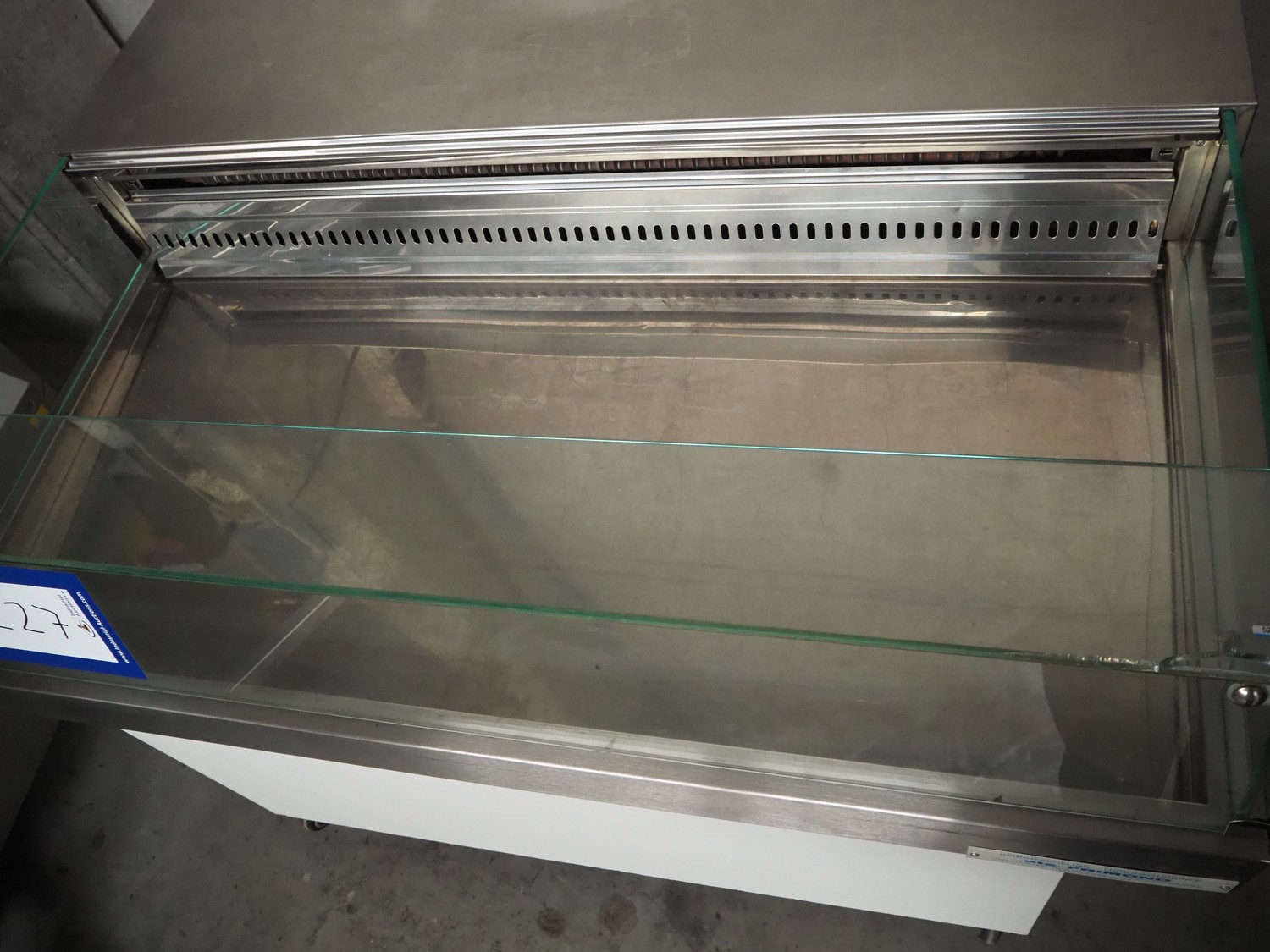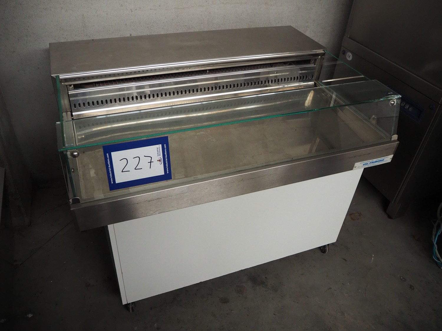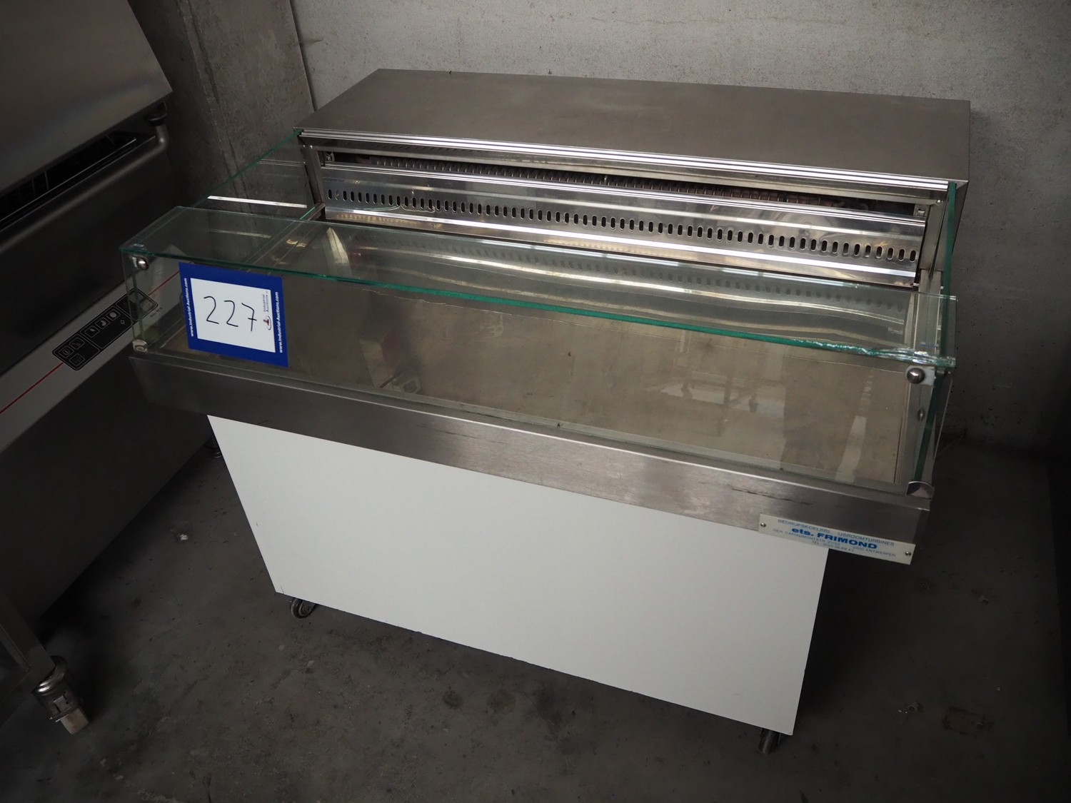 Frimond mobile refrigerated showcase, inside dimensions: 1170 mm x 520 mm x 200 mm, total dimensions: 1230 mm x 950 mm x 850 mm.