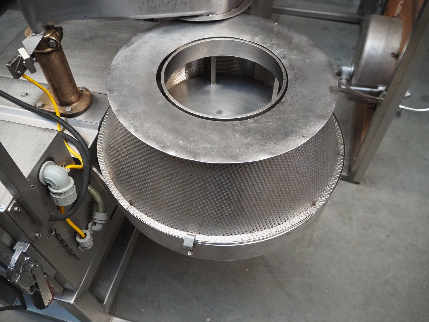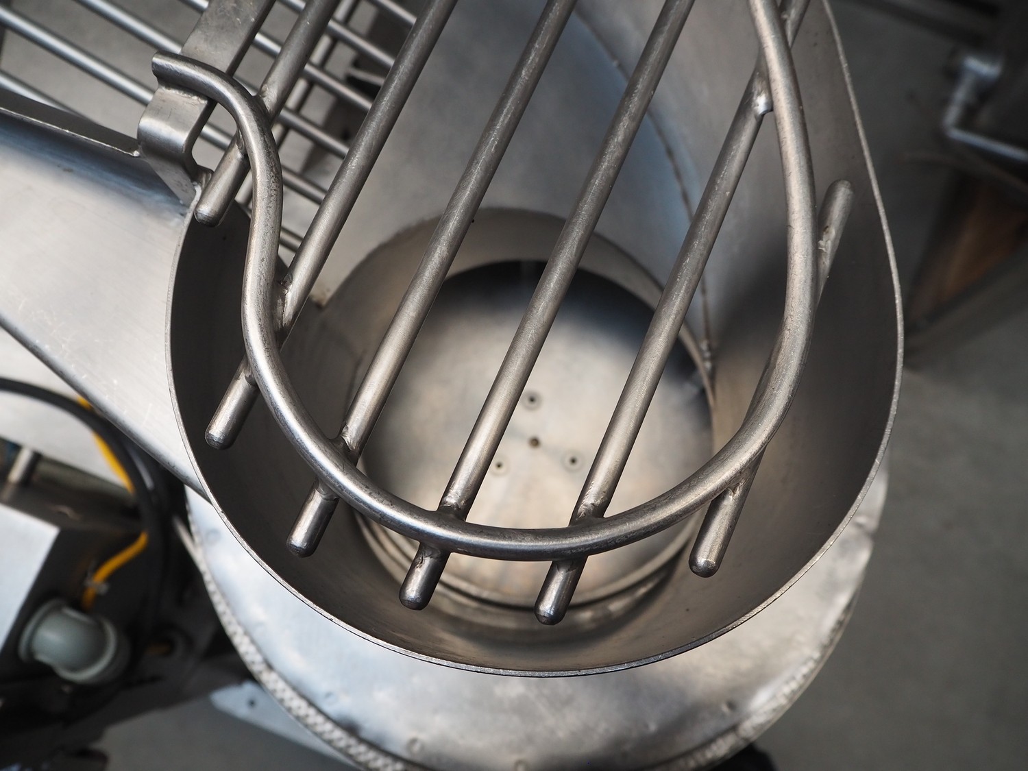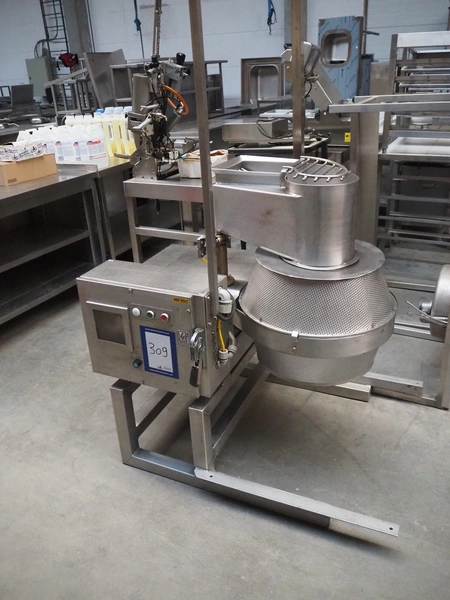 S/s cutter for cutting jullienne, clearance: 255 mm x 165 mm, Ø input: 240 mm, inside dimensions: Ø 350 mm x 90 mm, total dimensions: 1250 mm x 95 mm x 240 mm.