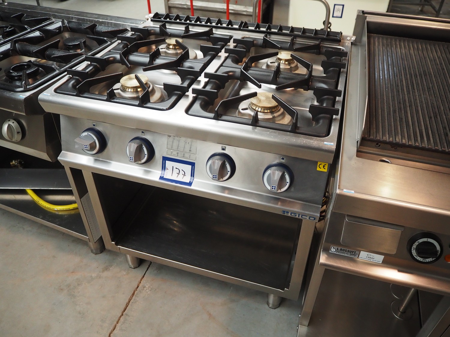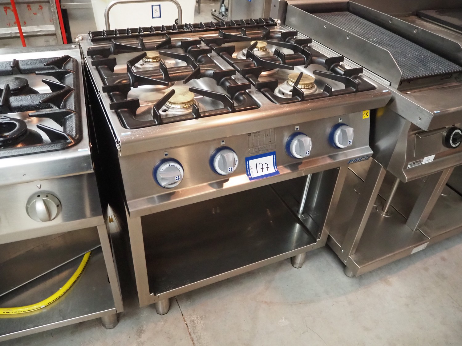 Gico 4-pit stove, type: 2CY-S2DY-S, serial number: AS78921001, year of construction: 12/01/18, 18 kW, dimensions: 700 mm x 800 mm x 900 mm.