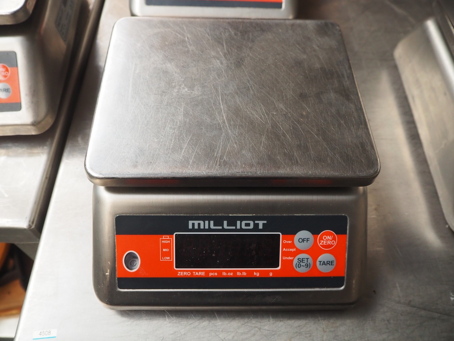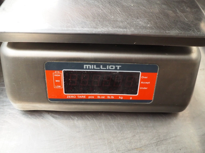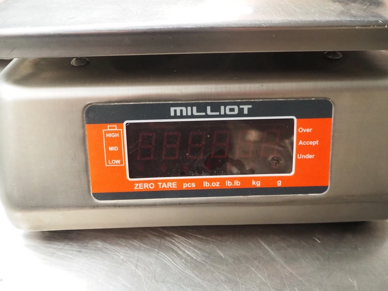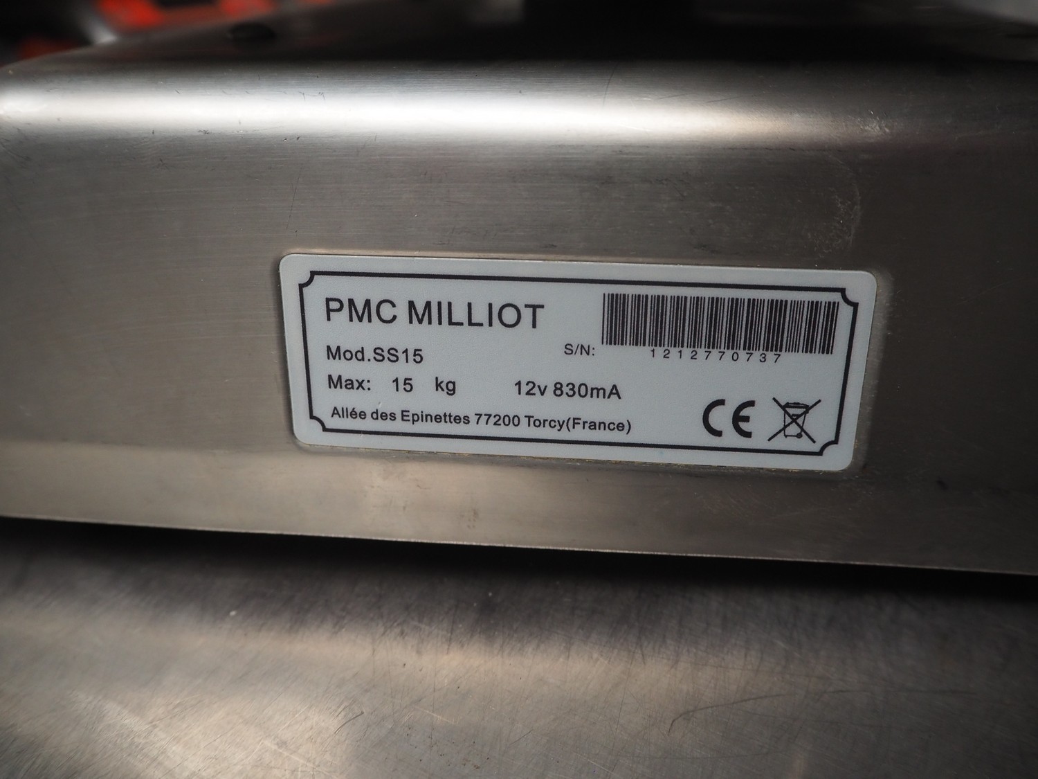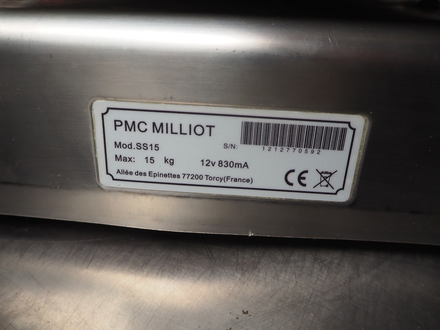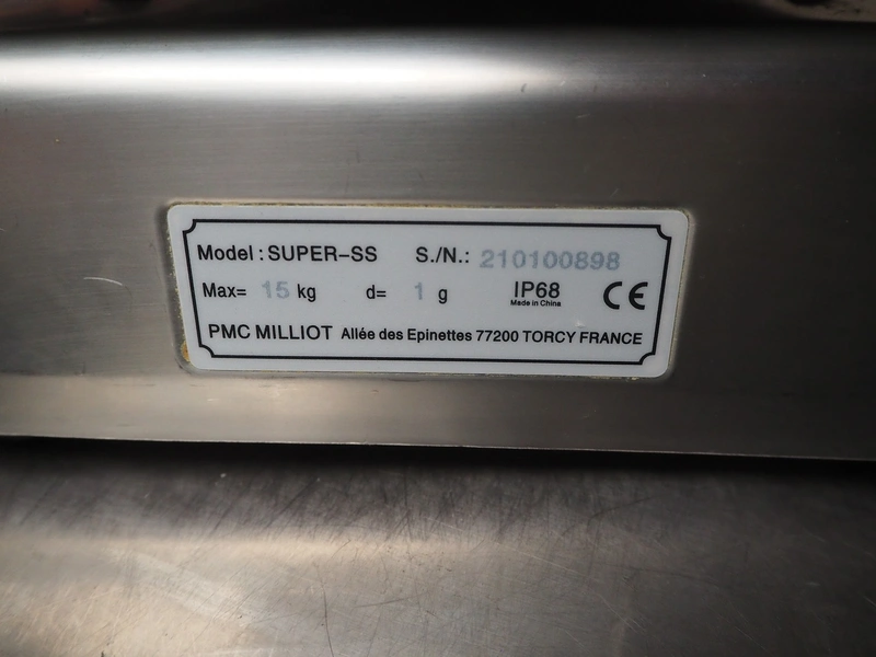 3x PMC Millot weighing scales, model: SS15, 12 V, 830 mA, maximum weight: 15 kg, dimensions: (3x) 290 mm x 235 mm x 120 mm.