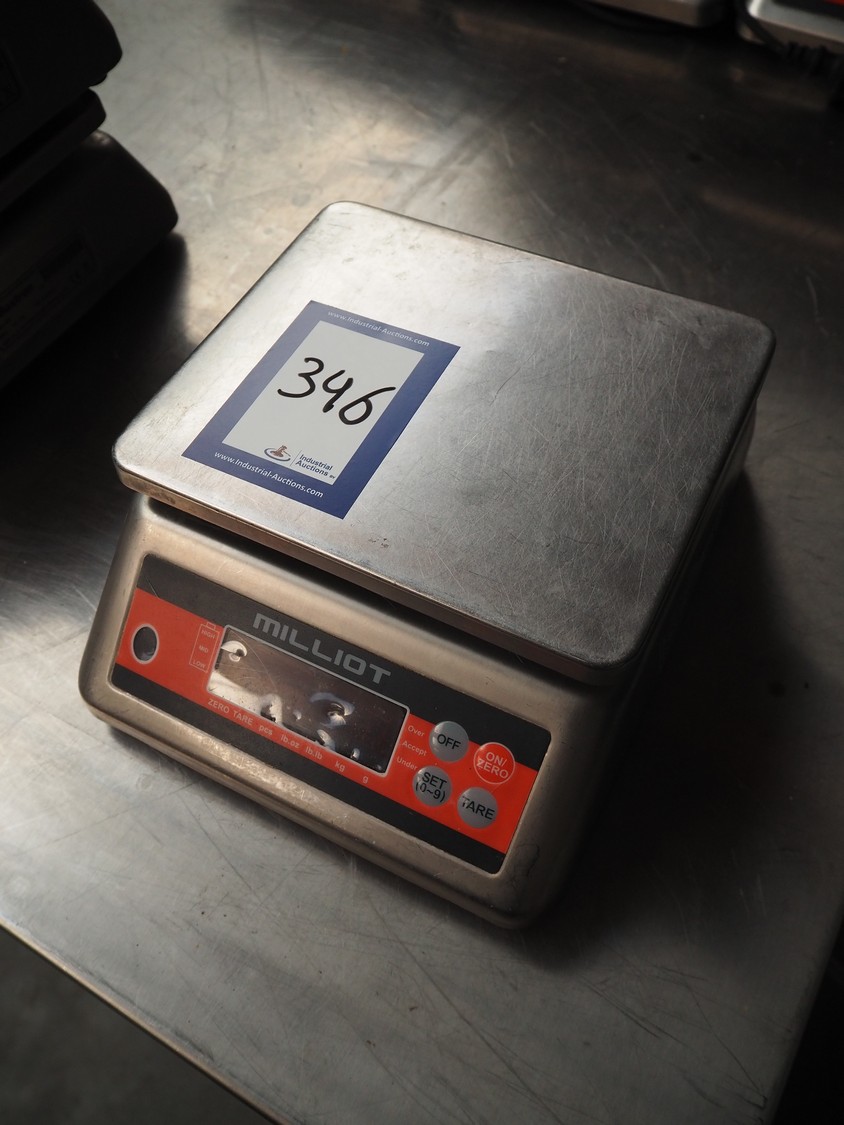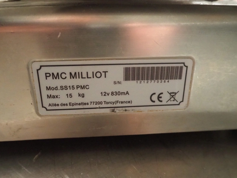 1 PMC Millot weighing scale, model: SS15 PMC, 12 V, 830 mA, maximum weight: 15 kg, dimensions: (3x) 290 mm x 235 mm x 120 mm.