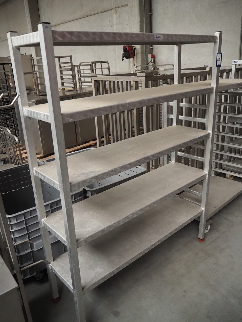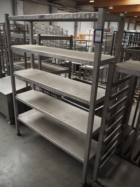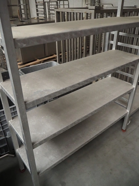 Steel rack, 5 floors, floor dimensions: (5x) 1370 mm x 370 mm, total dimensions: 1400 mm x 400 mm x 1820 mm.