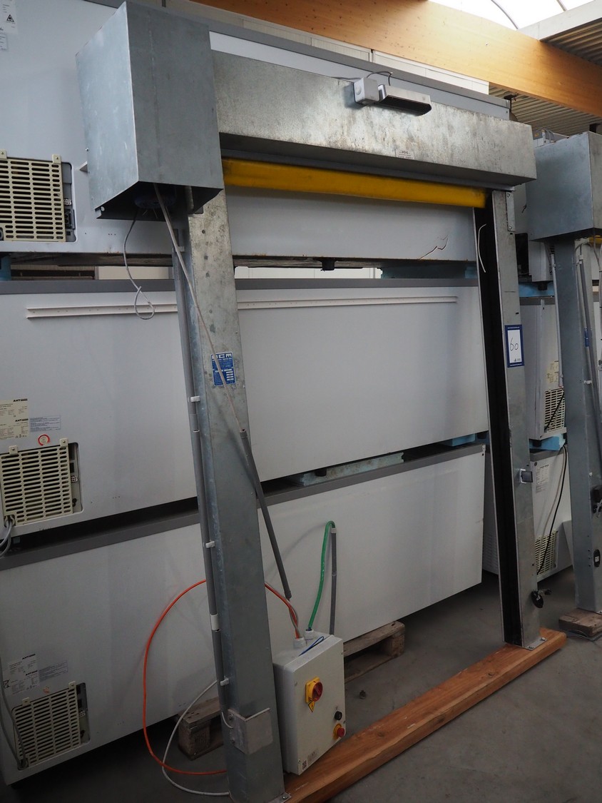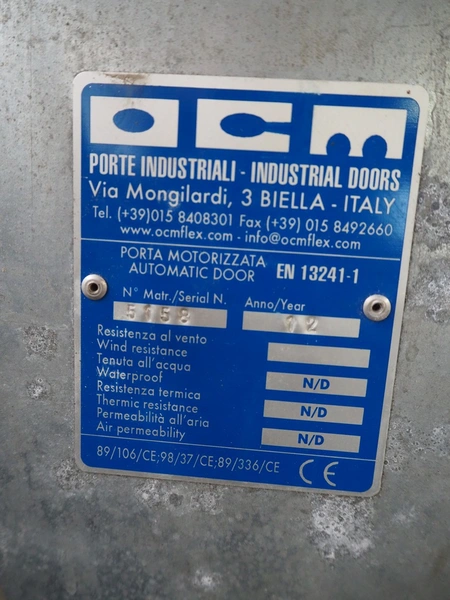 OCM electric shutter door, serial number: 5158, year of construction: 2012, door dimensions: 2050 mm x 1450 mm, total dimensions: 2050 mm x 450 mm x 2450 mm.