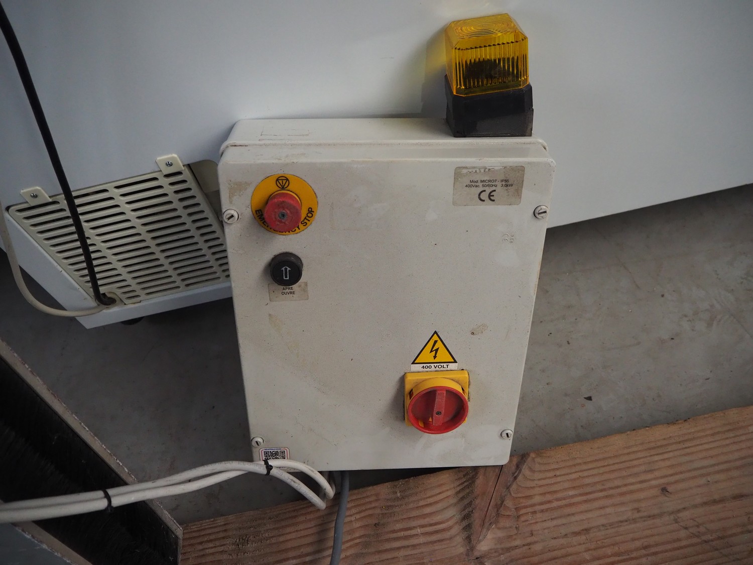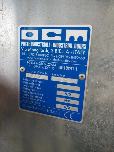 OCM electric shutter door, serial number: 5239, year of construction: 2012, door dimensions: 2100 mm x 2040 mm, total dimensions: 2650 mm x 450 mm x 2420 mm.