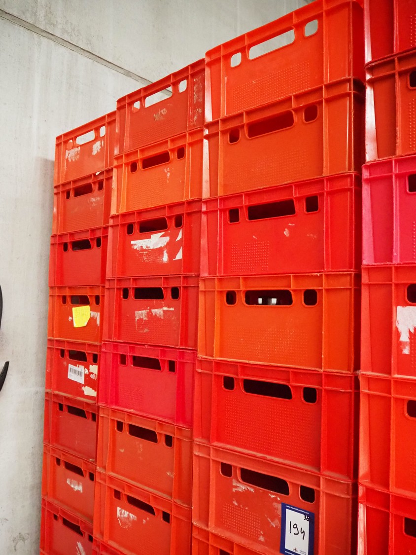 38 plastic E2 crates, dimensions: 600 mm x 400 mm x 200 mm.