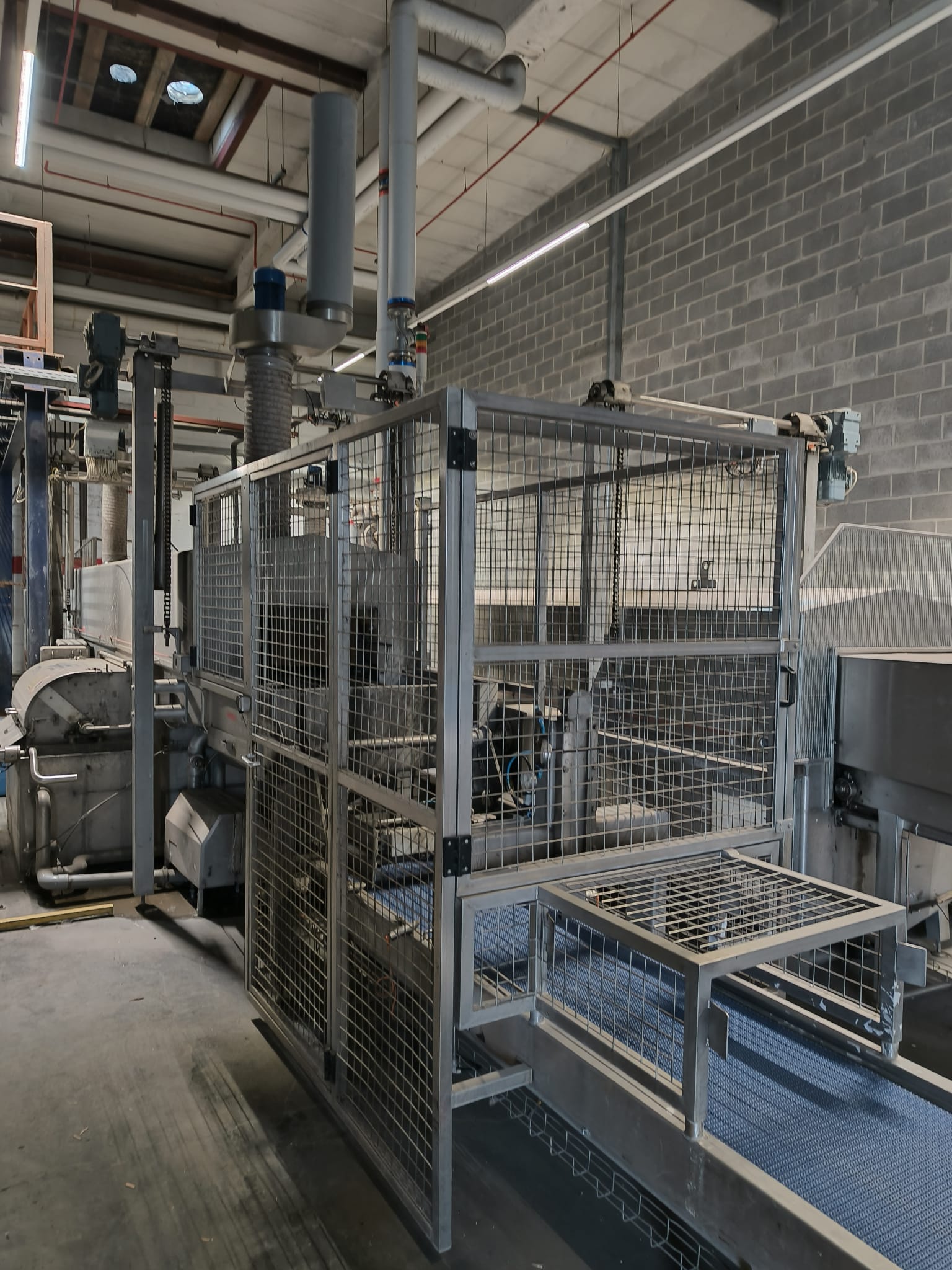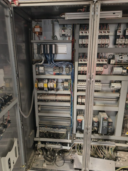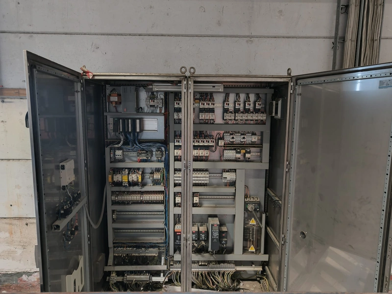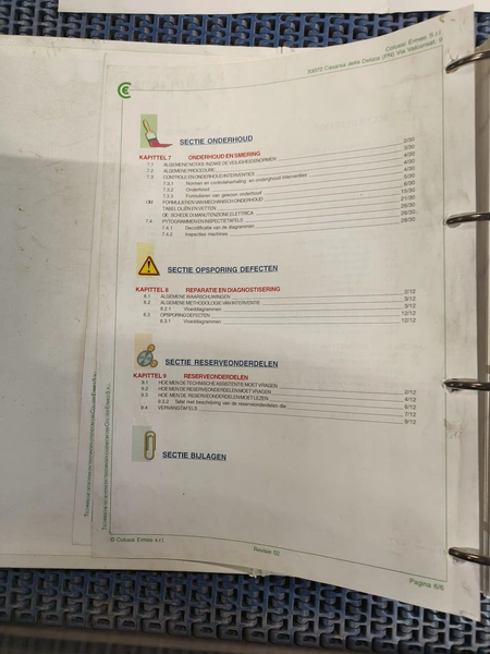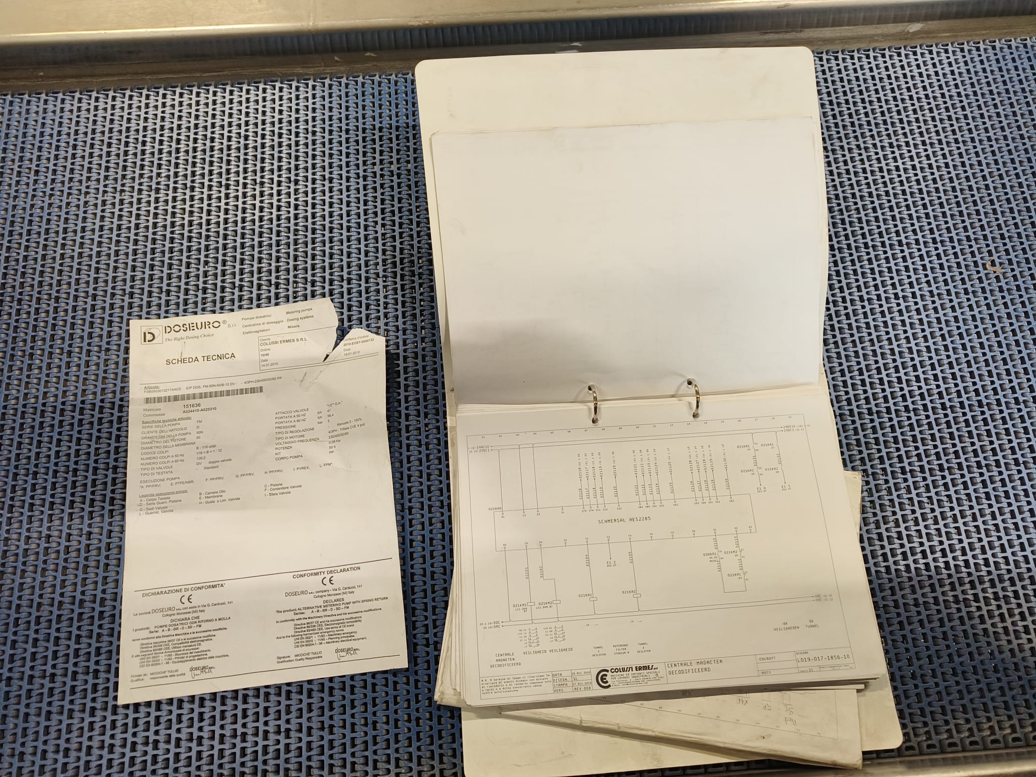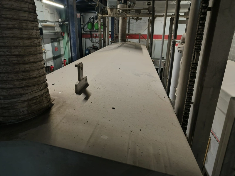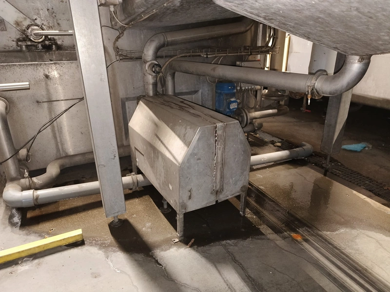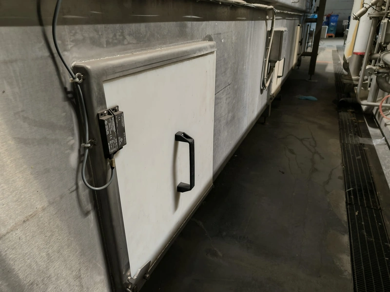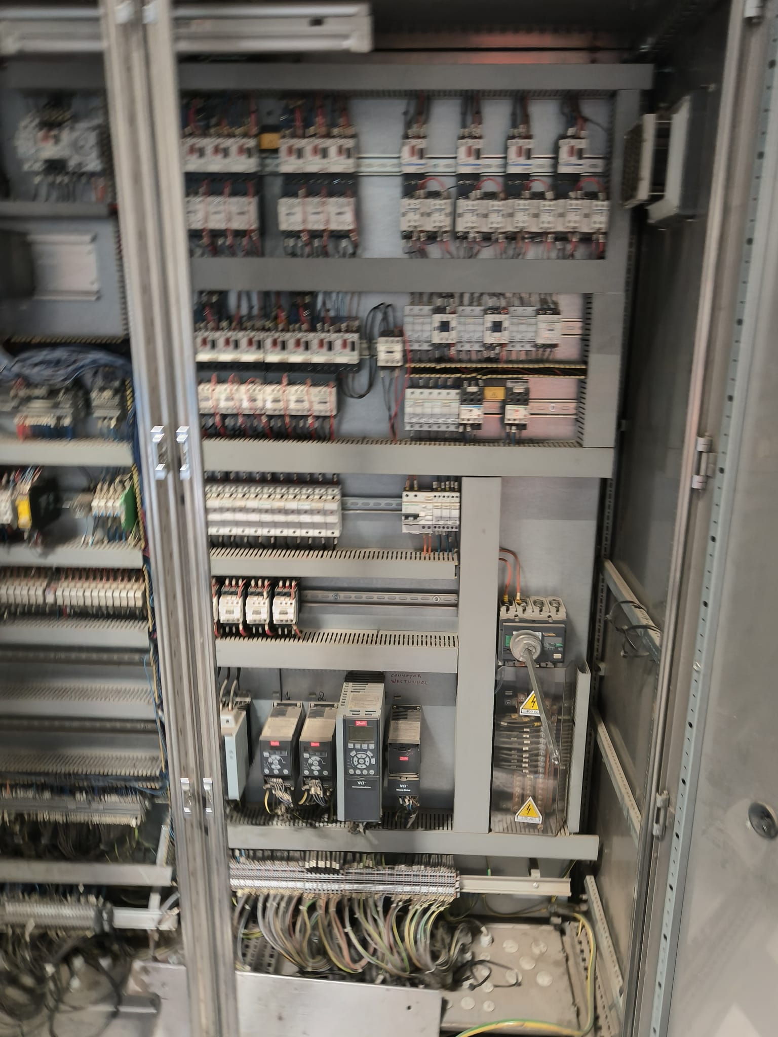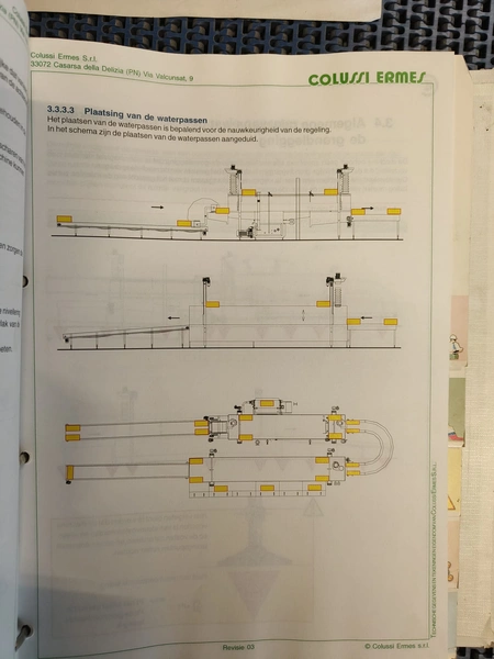Colussi Ermes crate washing and drying line, type: L013/01, type: 9973, serial number: 1856, year of construction: 2010, maximum crate size: 600 mm x 400 mm x 330 mm, consisting of: infeed belt, plastic mesh belt, belt width: 620 mm, total dimensions: 7250 mm x 970 mm x 930 mm, washing machine with tilting device, dimensions: 7700 mm x 2500 mm x 3600 mm, dryer, dimensions: 9000 mm x 2600 mm x 3600 mm, outfeed belt, dimensions: 6160 mm x 1100 mm x 1100 mm, switch cabinet, dimensions: 1620 mm x 650 mm x 2260 mm.