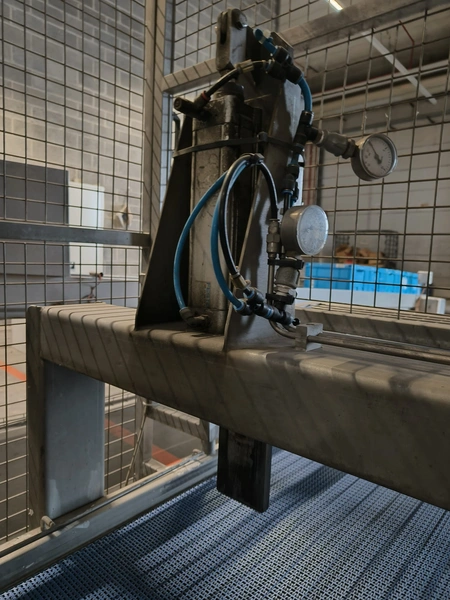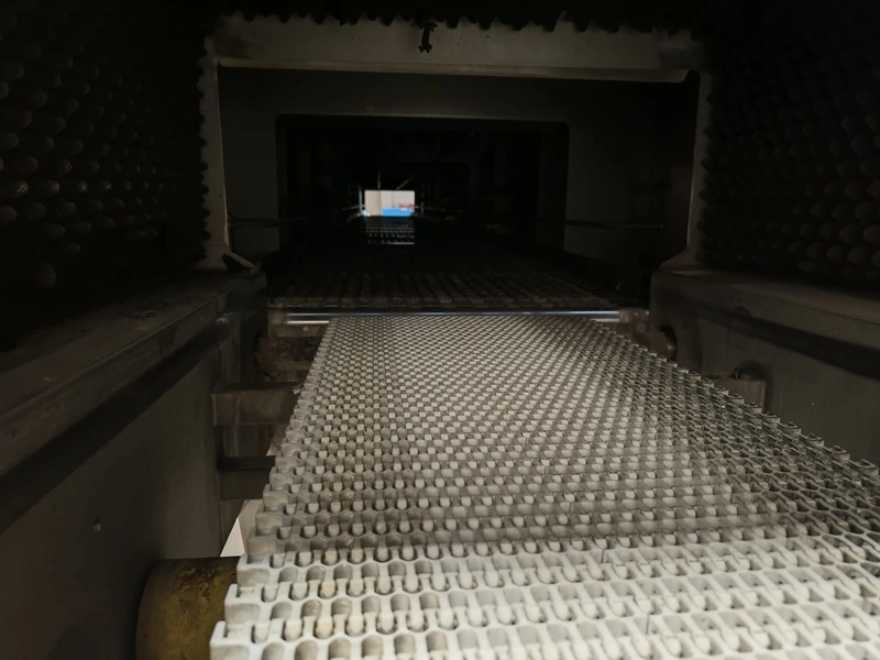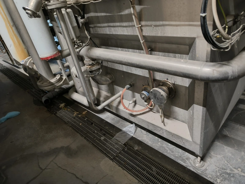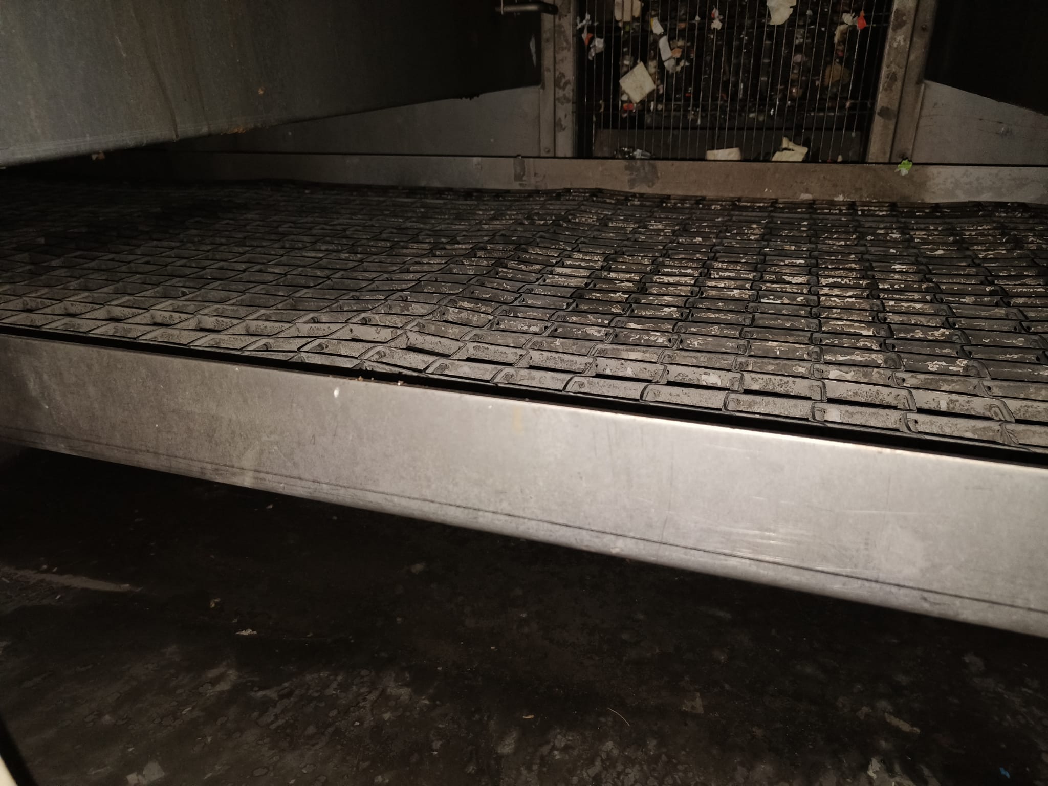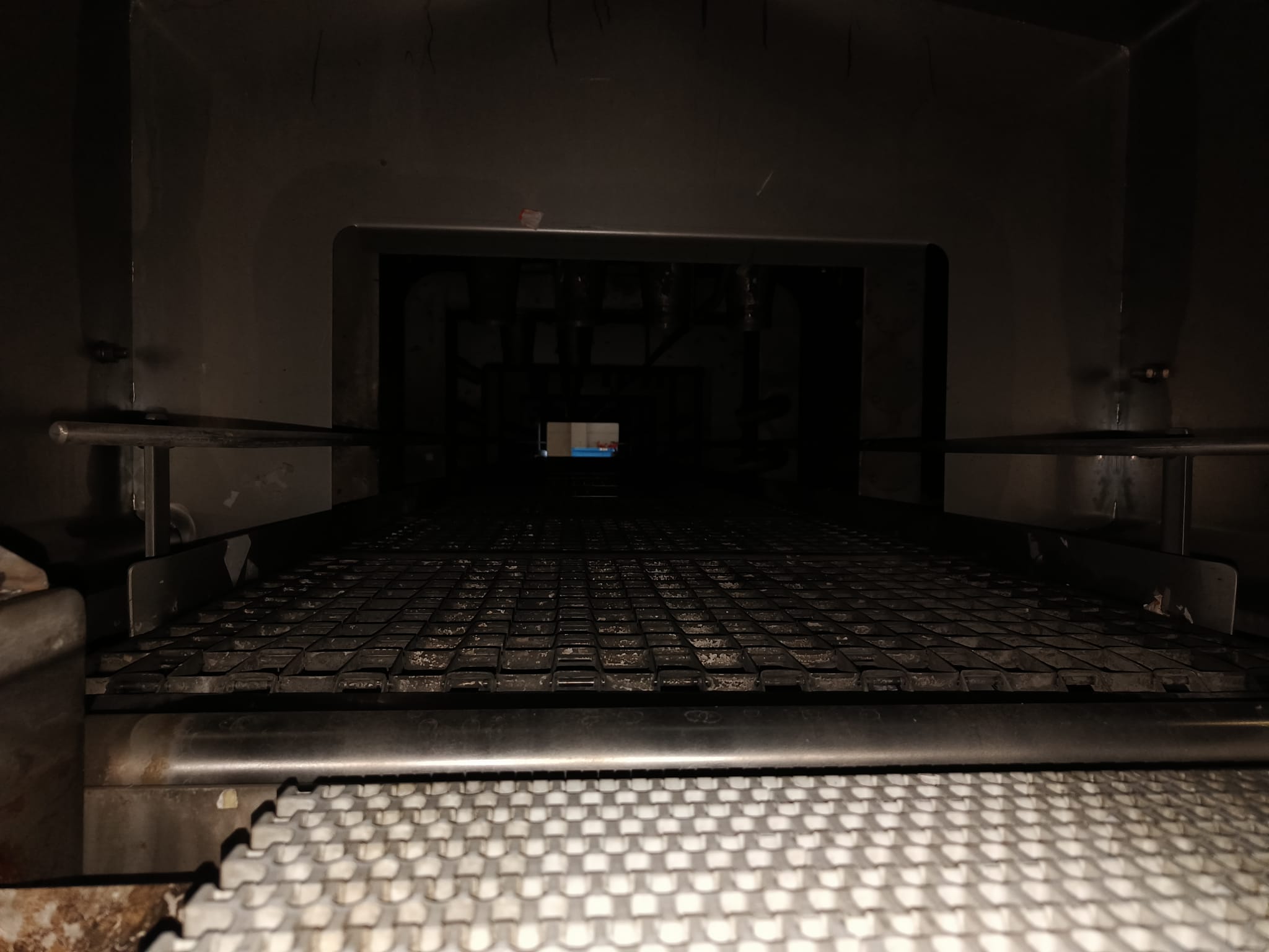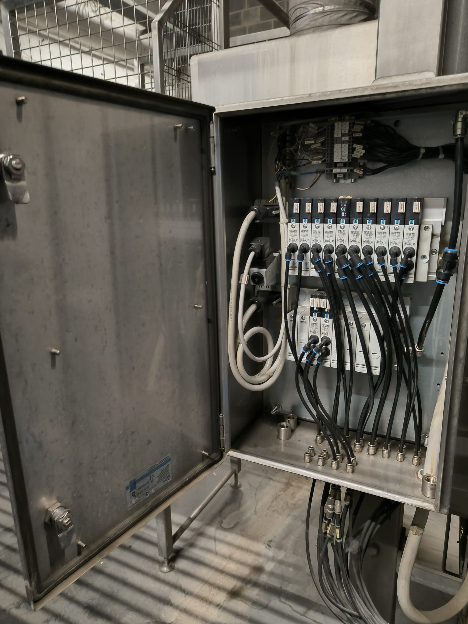 Colussi Ermes crate washing and drying line, type: L013/01, type: 9973, serial number: 1856, year of construction: 2010, maximum crate size: 600 mm x 400 mm x 330 mm, consisting of: infeed belt, plastic mesh belt, belt width: 620 mm, total dimensions: 7250 mm x 970 mm x 930 mm, washing machine with tilting device, dimensions: 7700 mm x 2500 mm x 3600 mm, dryer, dimensions: 9000 mm x 2600 mm x 3600 mm, outfeed belt, dimensions: 6160 mm x 1100 mm x 1100 mm, switch cabinet, dimensions: 1620 mm x 650 mm x 2260 mm.