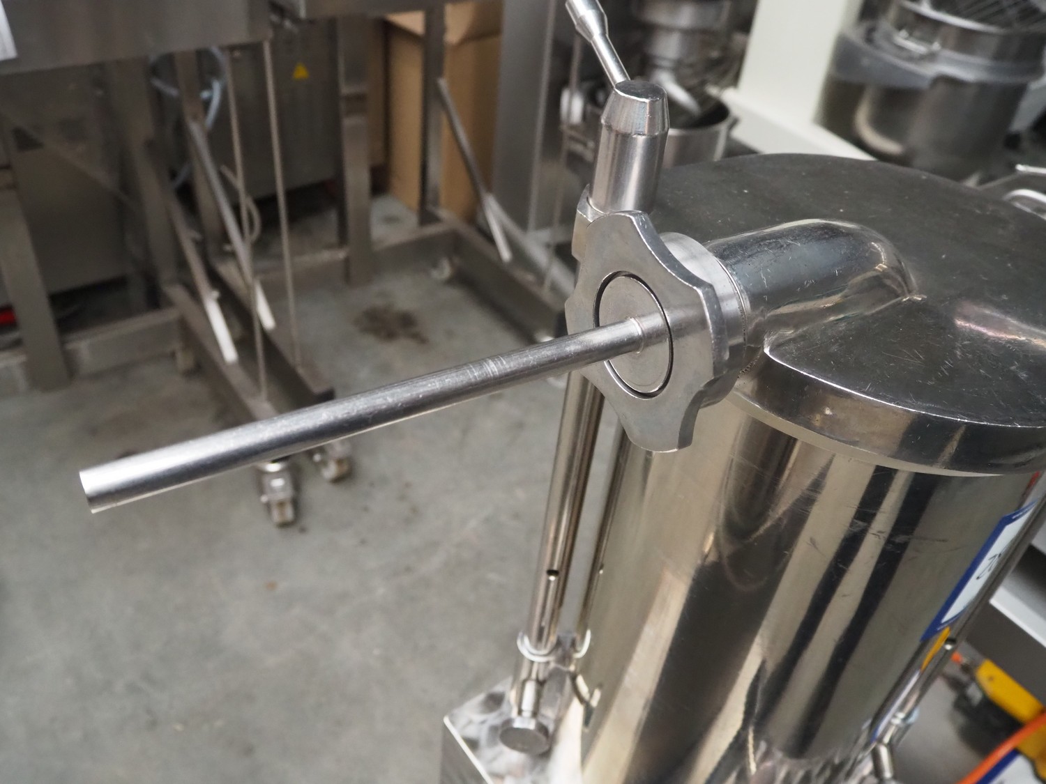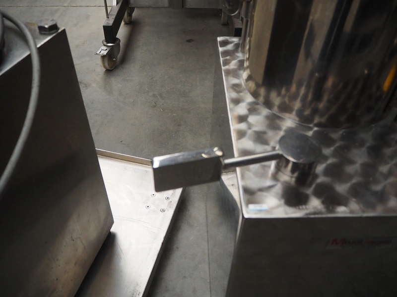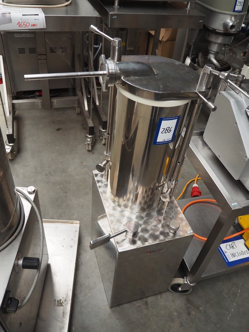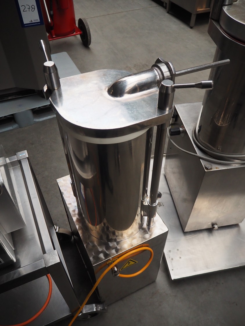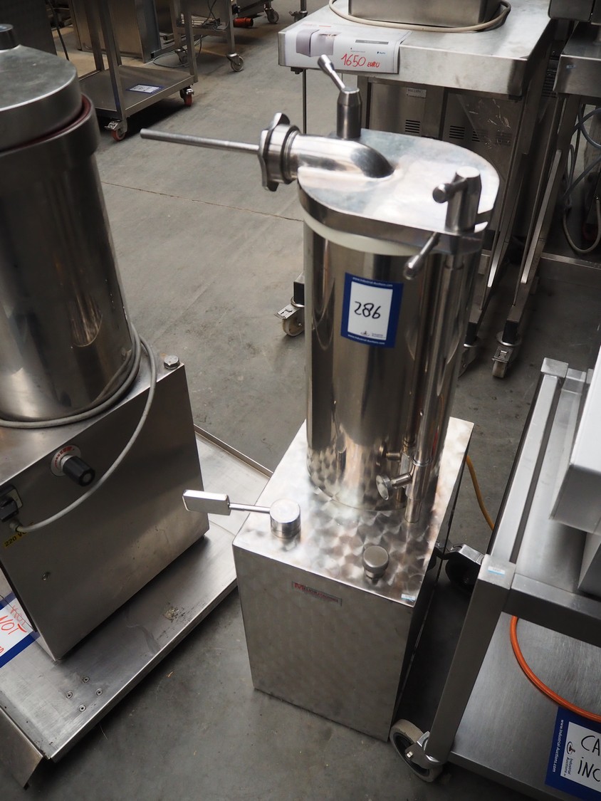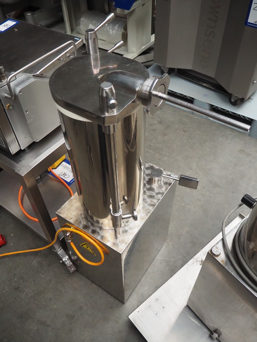 Debotec piston filler, inside dimensions: Ø 215 mm x 460 mm, total dimensions: 540 mm x 430 mm x 1150 mm.