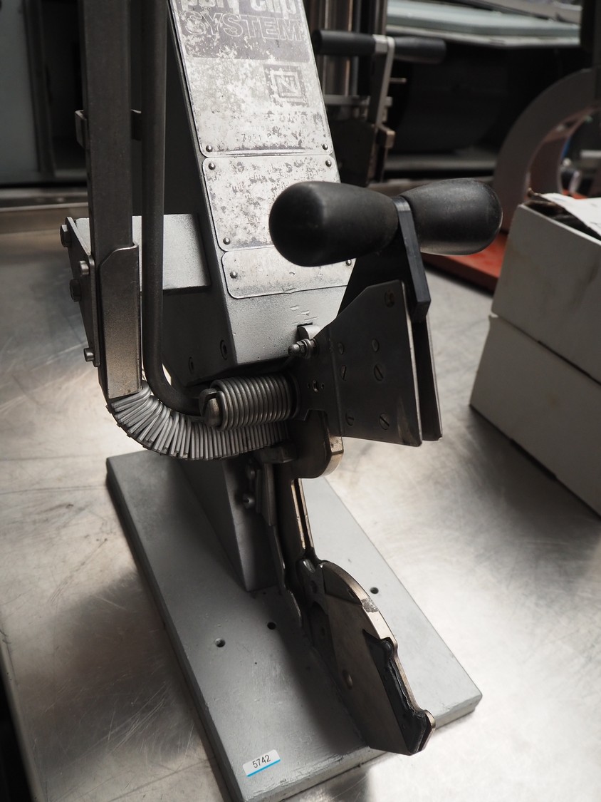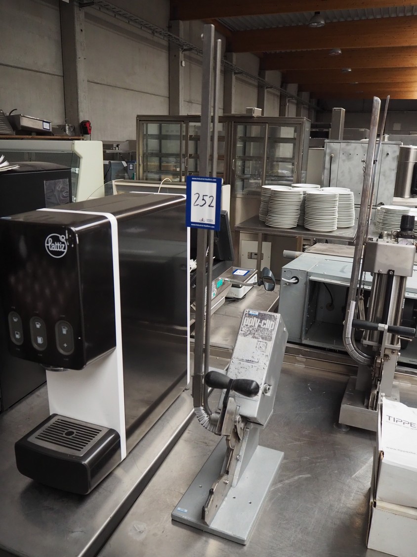 Poly-clip System GmbH & Co. KG table model clipper type: SCD 7000, serial number: 7851, pressure: 5-7 bar, dimensions: 400 mm x 1800 mm x 920 mm.