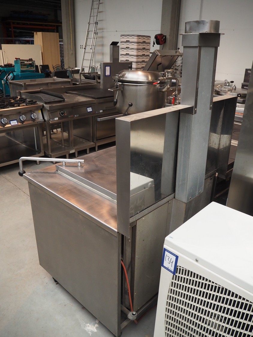 Delrue cooking vessel, number: 20950162, inside dimensions: 500 mm x 500 mm x 430 mm, total dimensions: 800 mm x 1000 mm x 1700 mm.