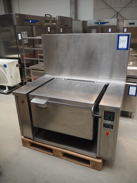 Rubbens cooking vessel, inside dimensions: 720 mm x 600 mm x 200 mm, total dimensions: 1300 mm x 1000 mm x 1400 mm.