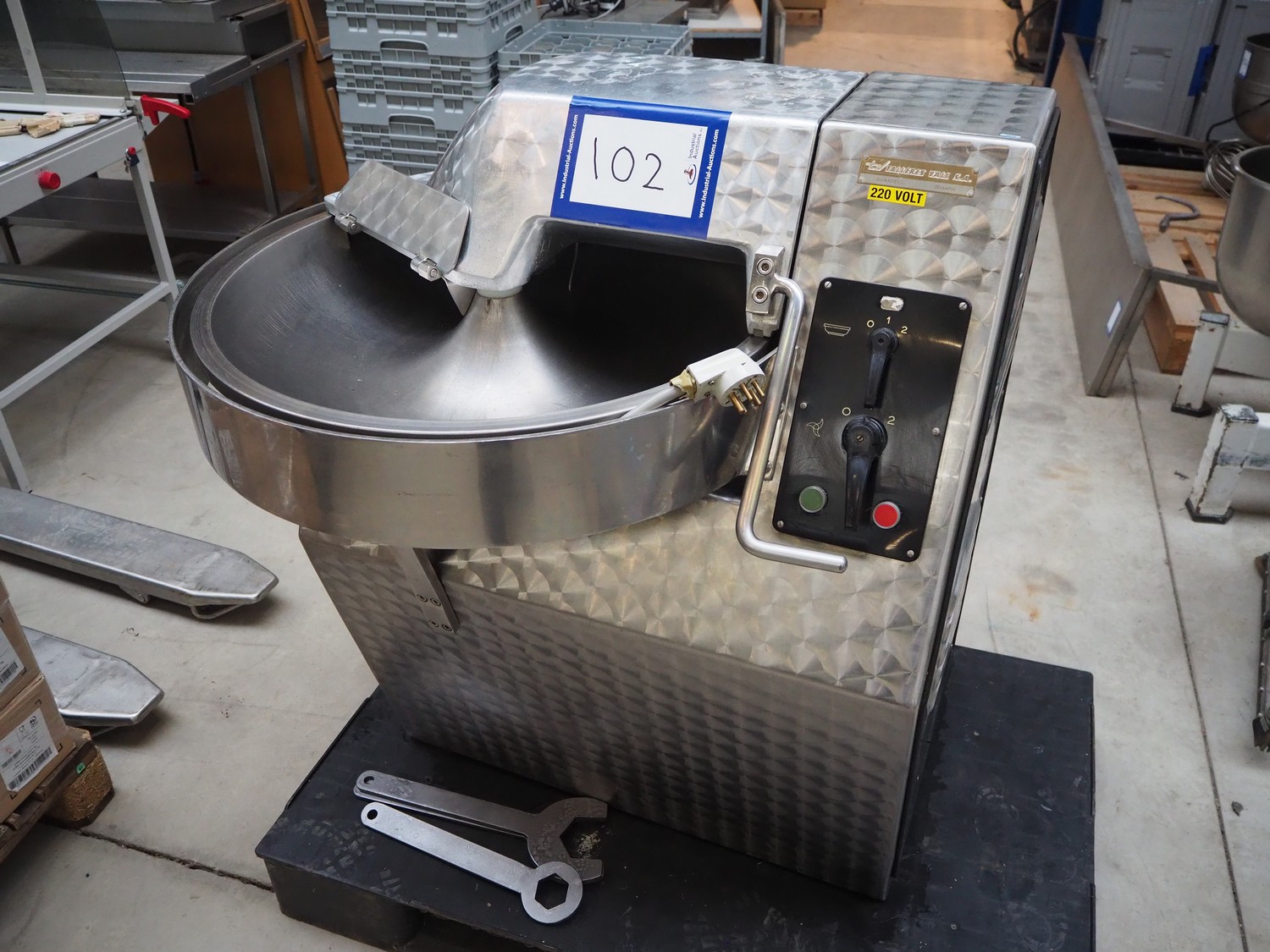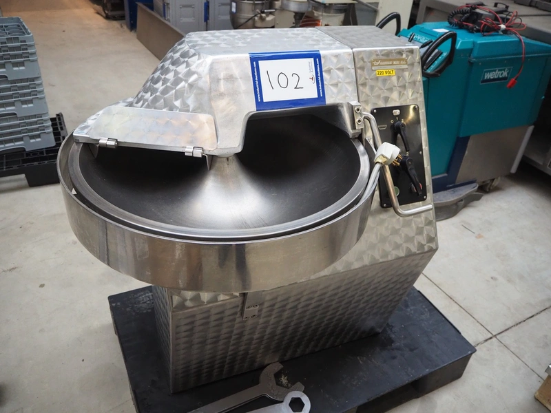 Talleres Vall S.A. s/s bowl cutter, bowl dimensions: Ø 685 mm x 120 mm, total dimensions: 1050 mm x 800 mm x 1050 mm.