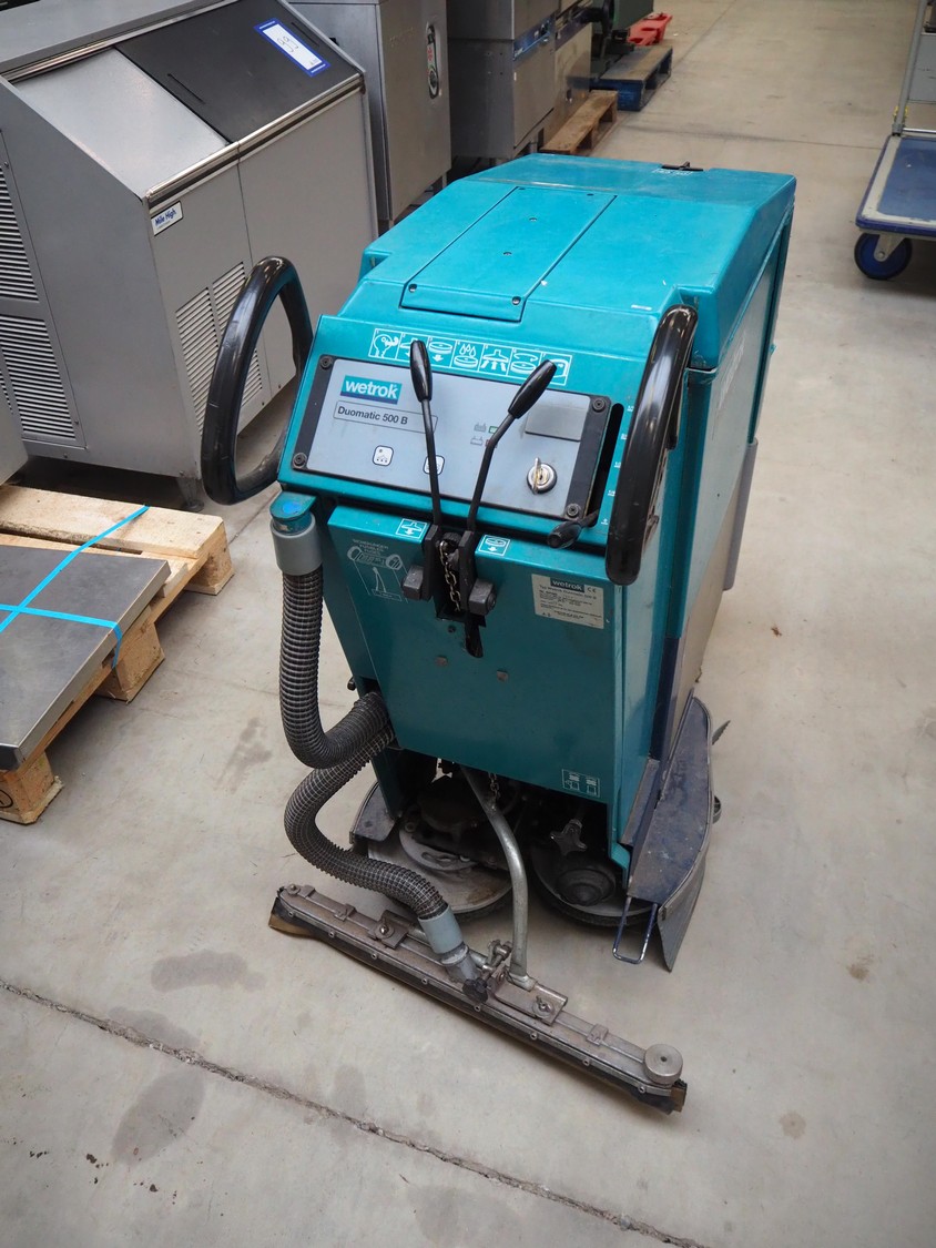 Wetrok floor scrubbing machine, type: Duomatic 500 B, number: 50160- 7552, 24 V, 880 W, weight: 209 kg, dimensions: 1100 mm x 700 mm x 1200 mm. With charger.