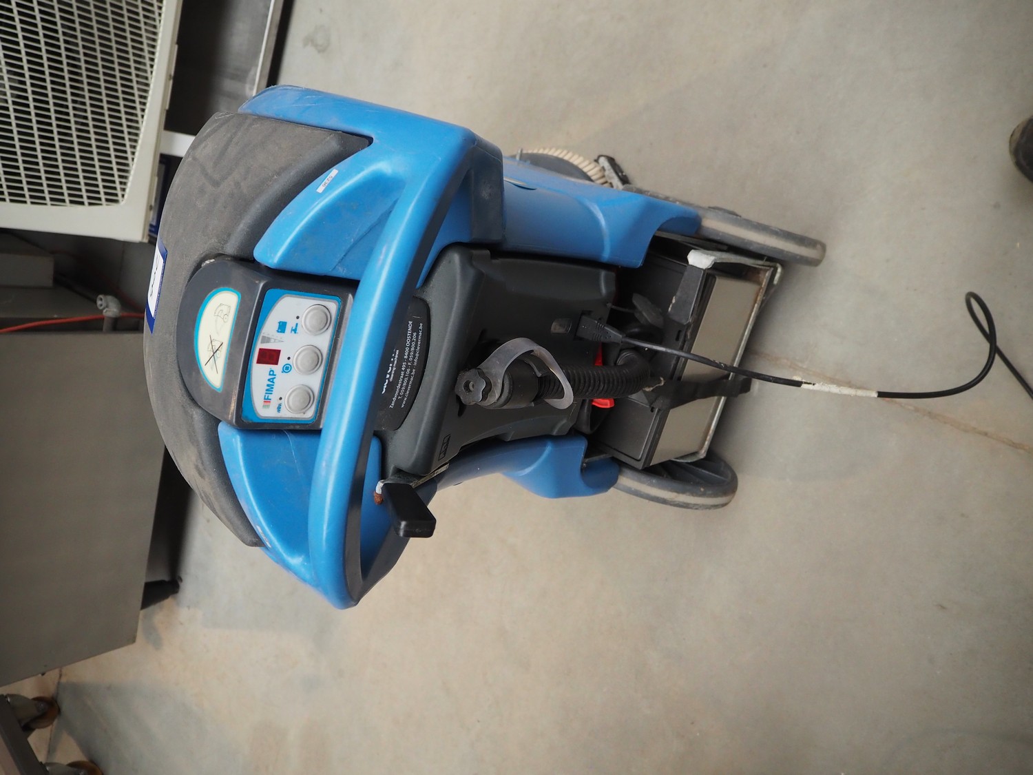 Fimap floor scrubbing machine, type: My16 B, dimensions: 710 mm x 450 mm x 950 mm.