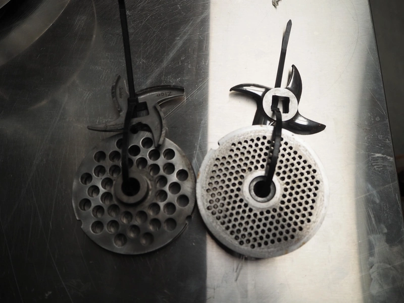 Grinder, type: HP32, number: 2630, 380 V, 2.2 kW, Ø plate: 100 mm, Ø perforations: 4 mm, total dimensions: 900 mm x 550 mm x 1250 mm.