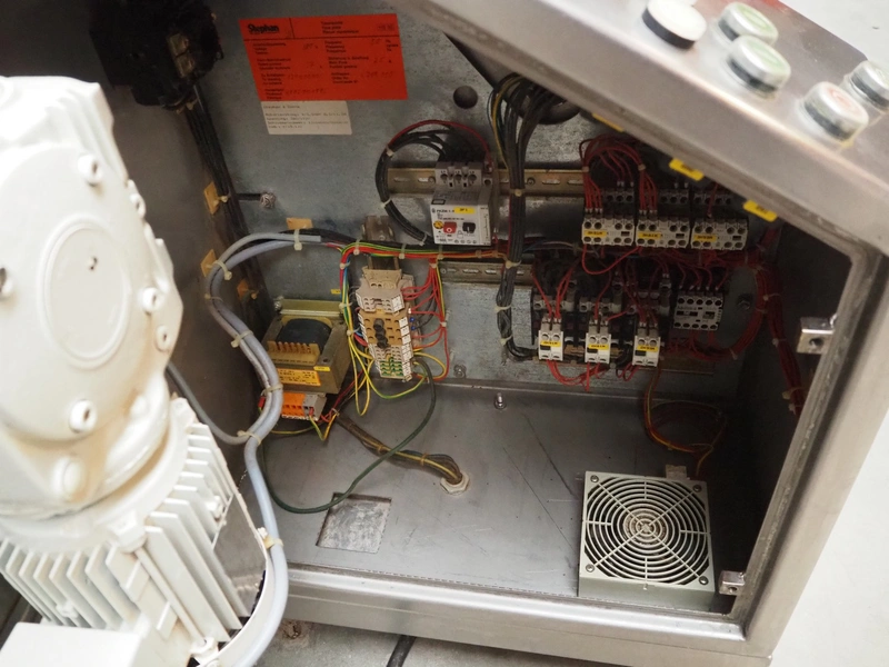 Stephan vacuum mixer, type: UM 44 S, machine number: 719.110.01, year of construction: 1992, 380 V, 3 Ph, 50 Hz, 13.8 A, 5.5 kW, inside dimensions: Ø mm x mm, total dimensions: 1100 mm x 650 mm x 1200 mm.
