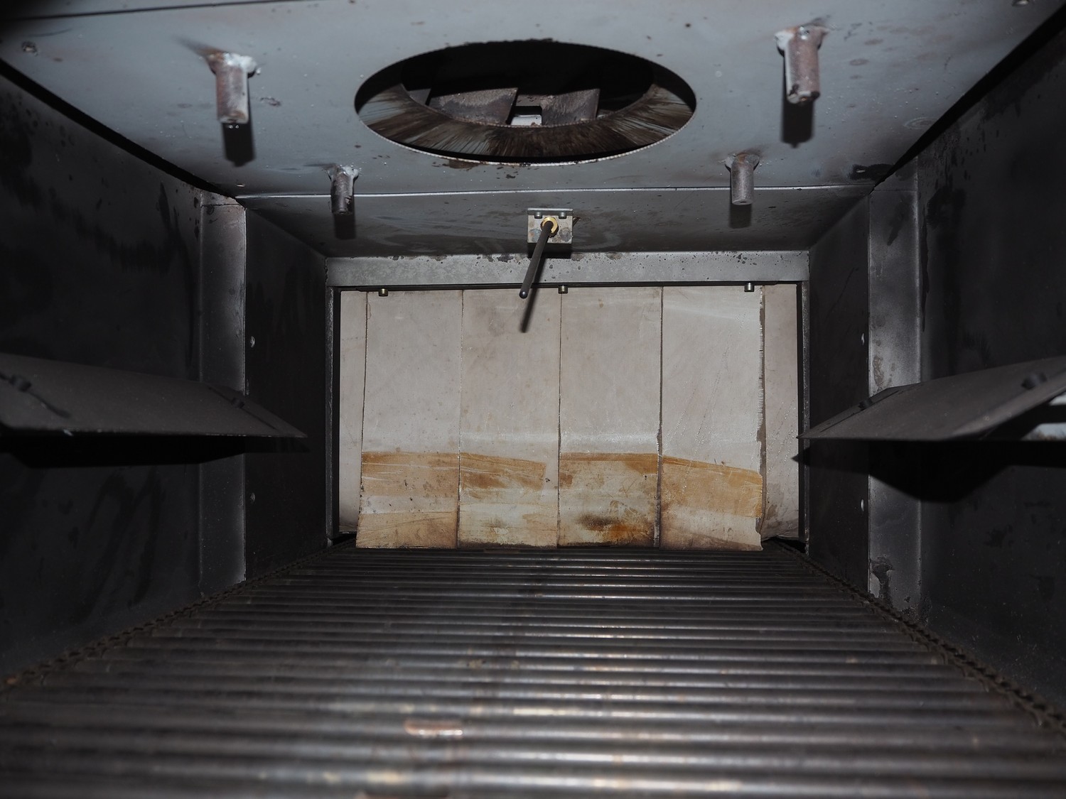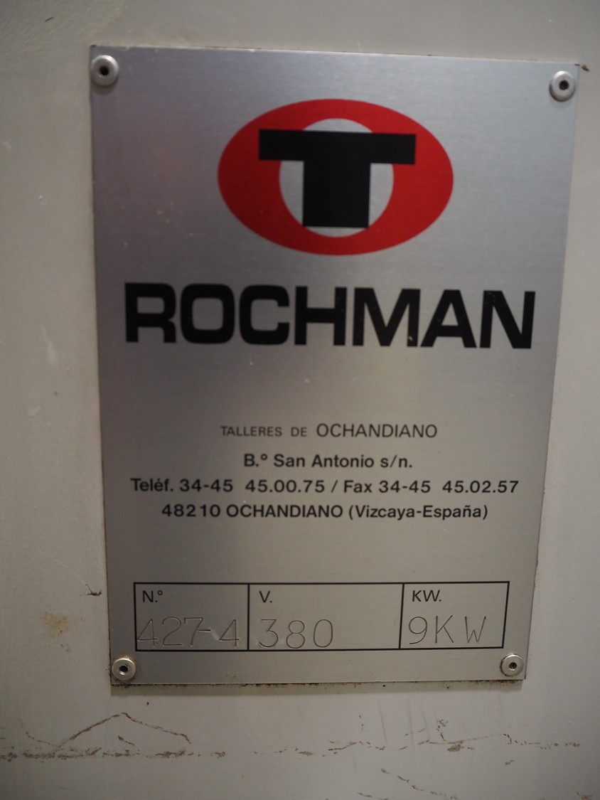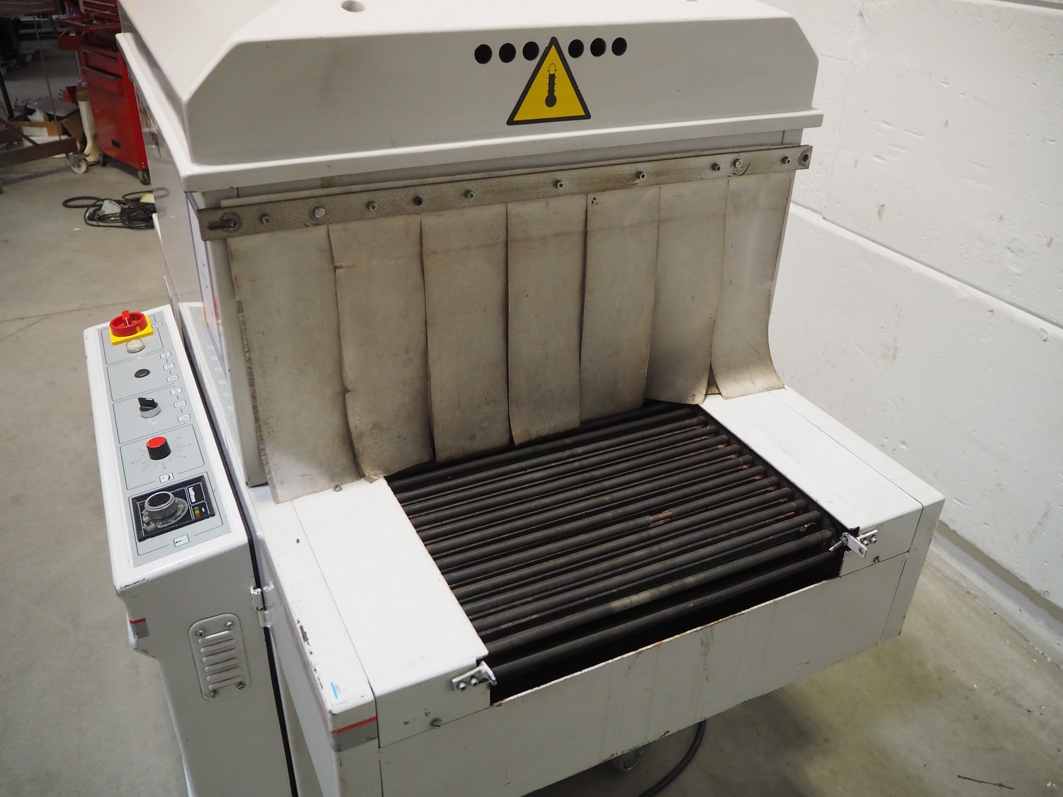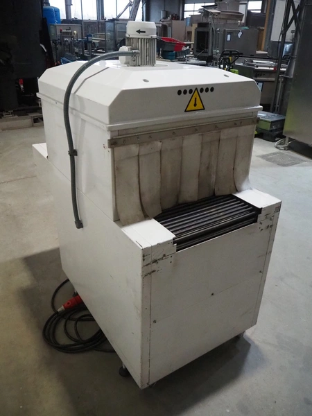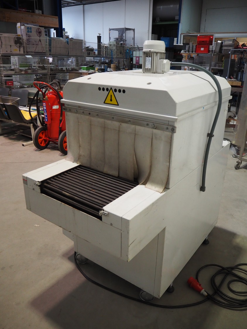 Rochman mobile shrink tunnel, number: 427-4, 380 V, 9 kW, clearance: 445 mm x 270 mm, steel rollers, roller width: 445 mm, total dimensions: 1400 mm x 950 mm x 1650 mm.