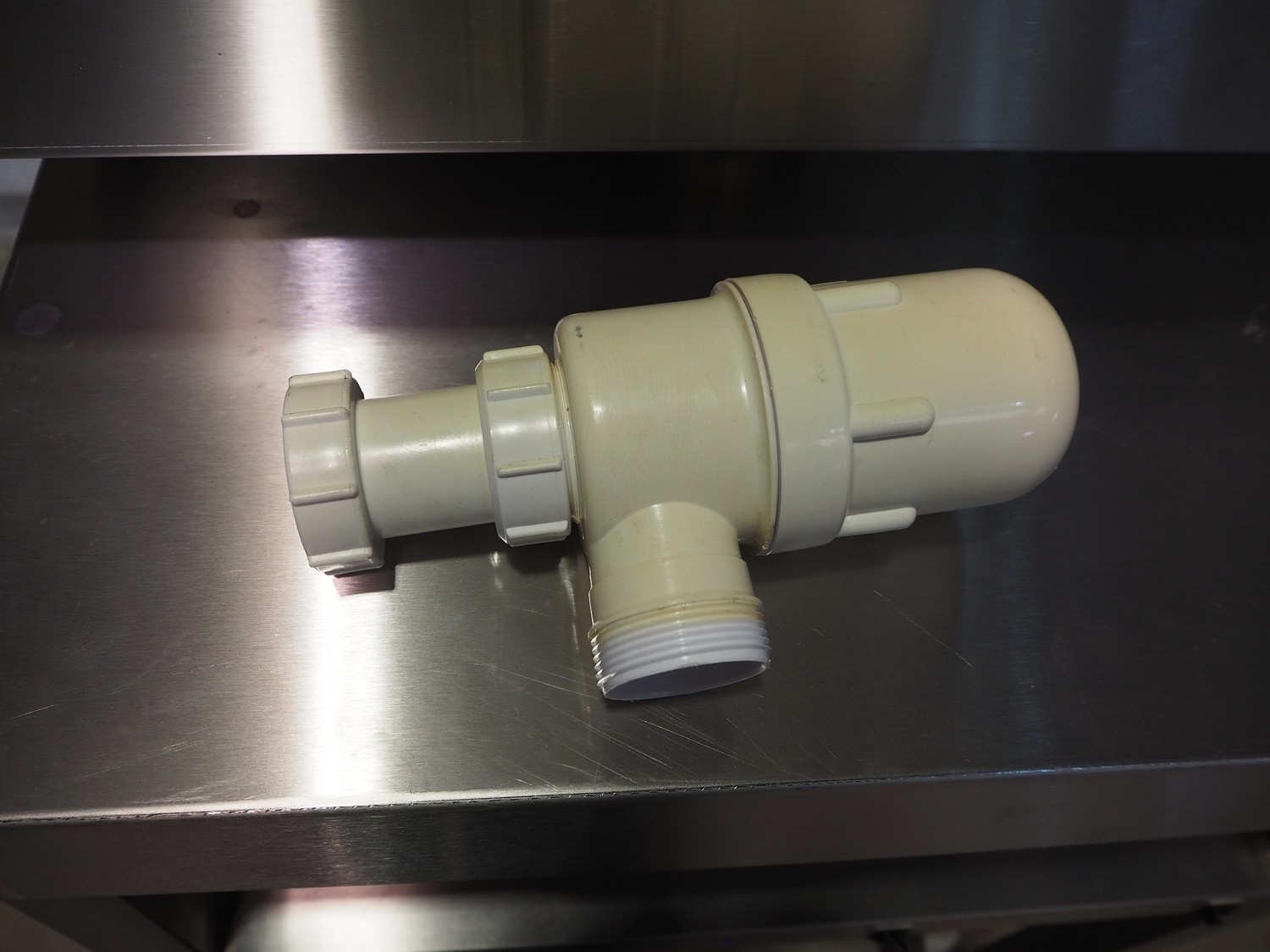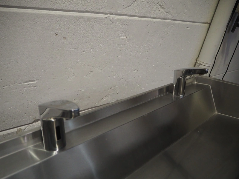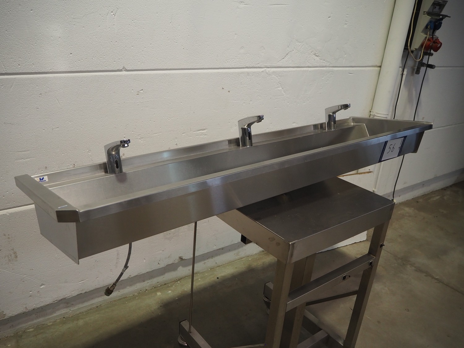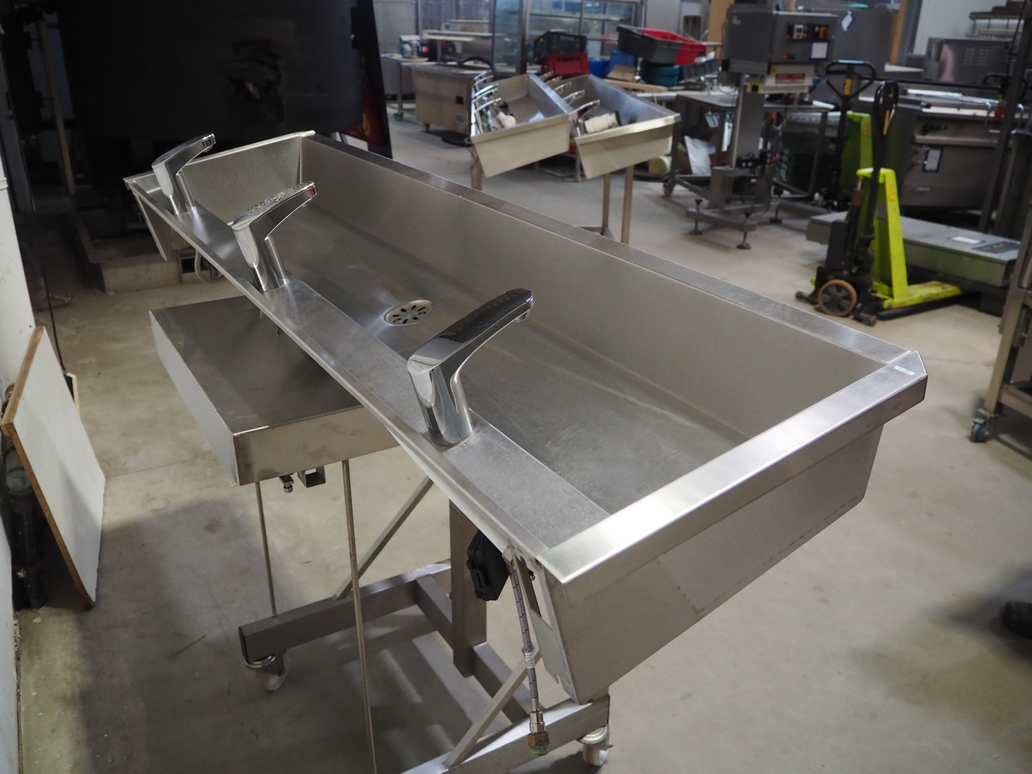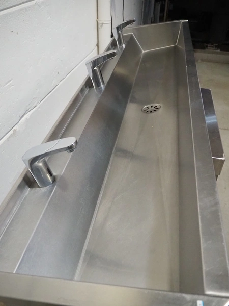 S/s sink with 3 faucets, dimensions: 1800 mm x 480 mm x 340 mm. Trolley not included.