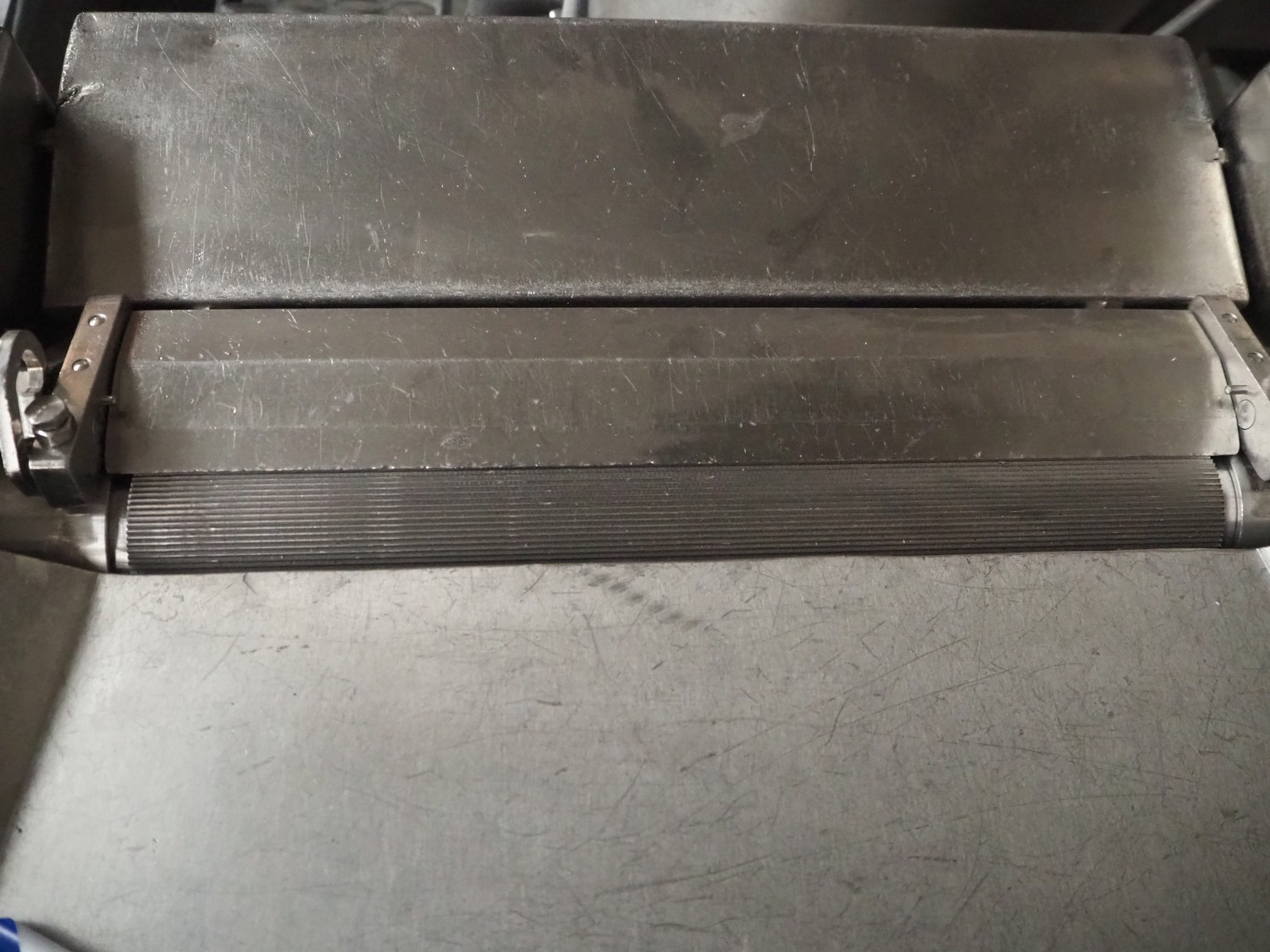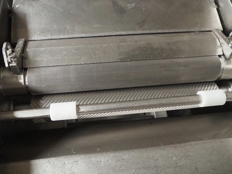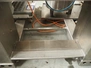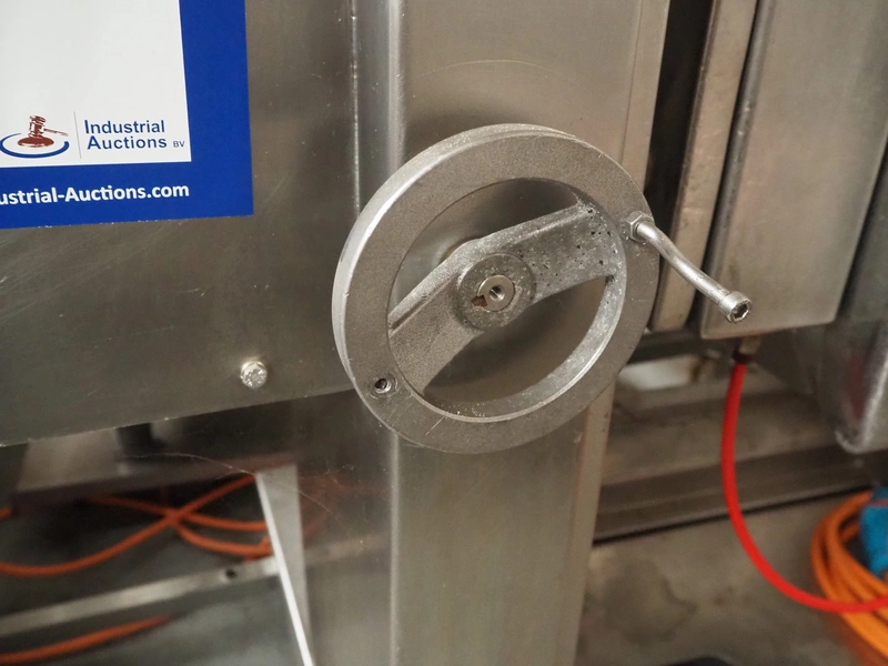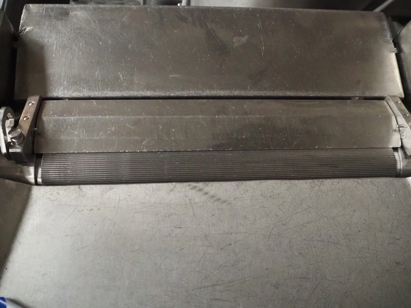 Cretel mobile skinning machine, working width: 437 mm, total dimensions: 820 mm x 700 mm x 950 mm.