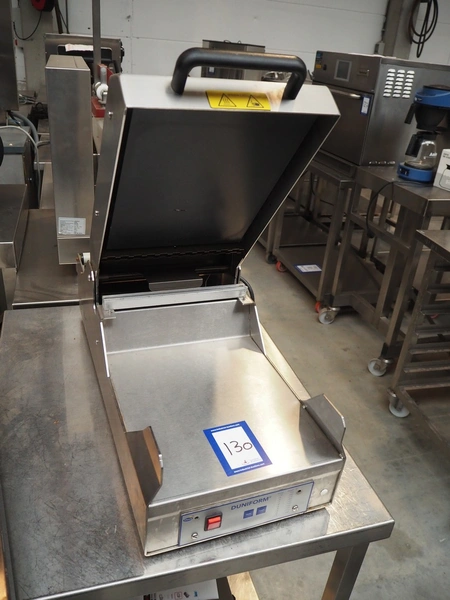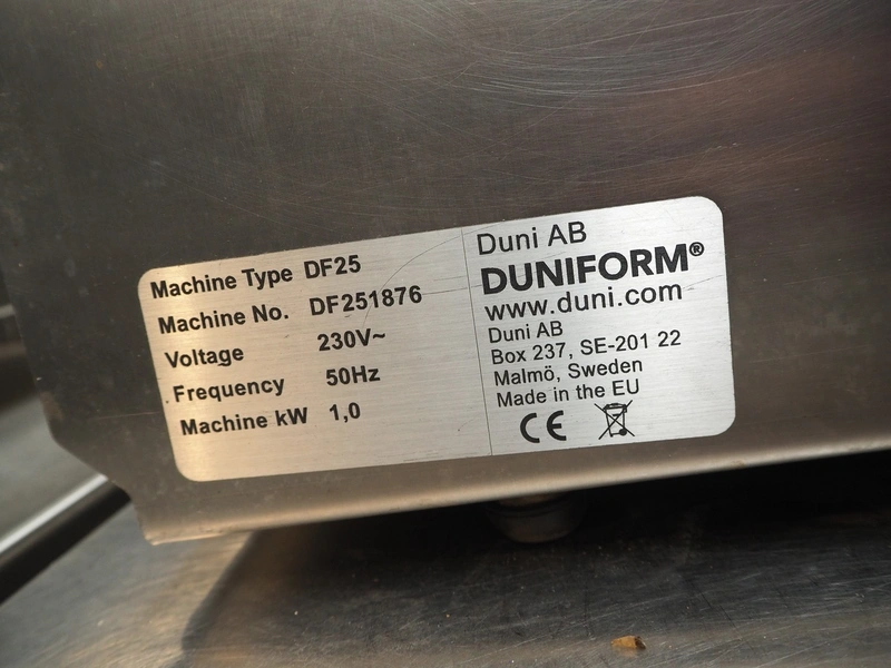 Duni AB traysealer, type: DF25, machine number: DF251876, 230 V, 1 Ph, 50 Hz, 1.0 kW, seal length: 290 mm, total dimensions: 750 mm x 310 mm x 650 mm. Without dye.