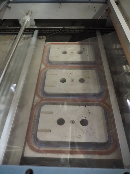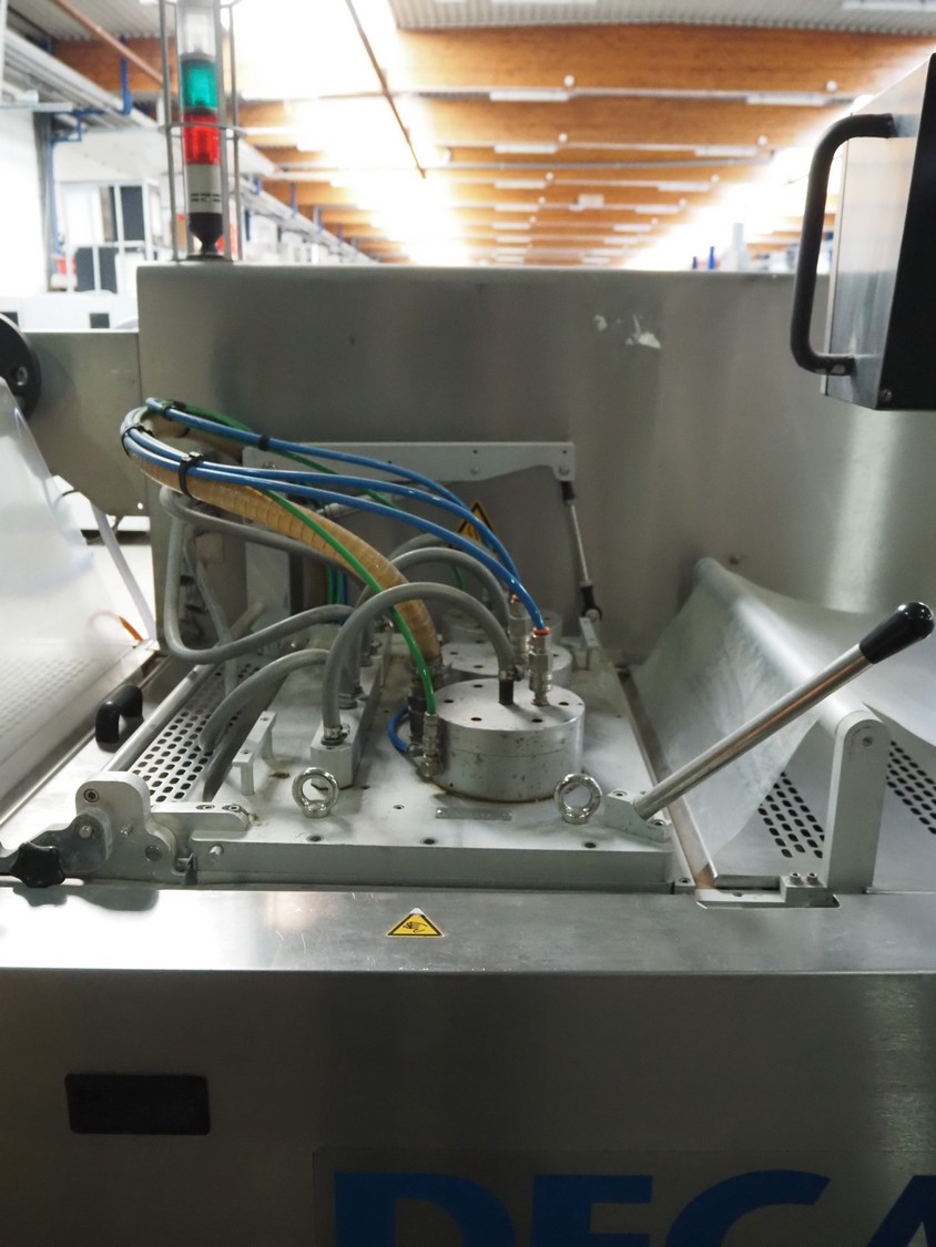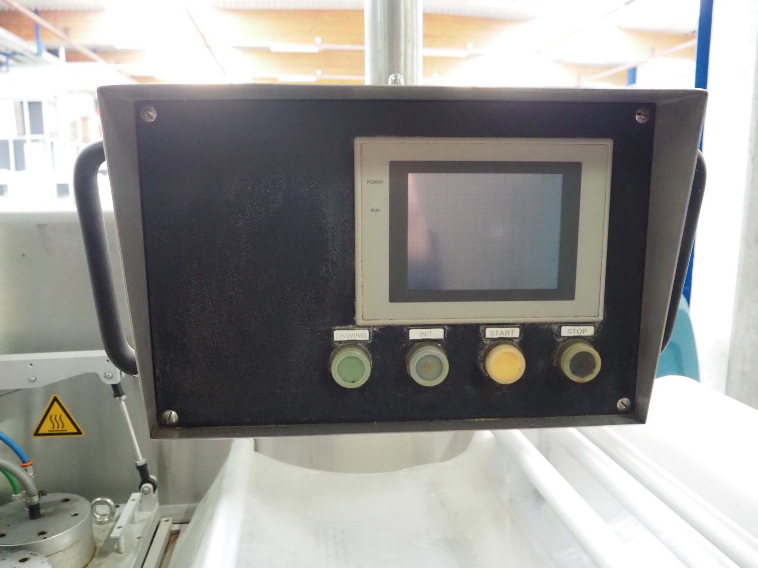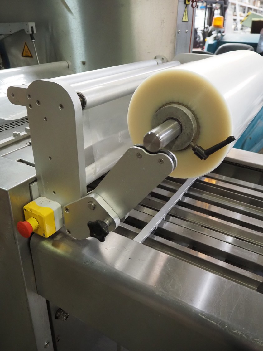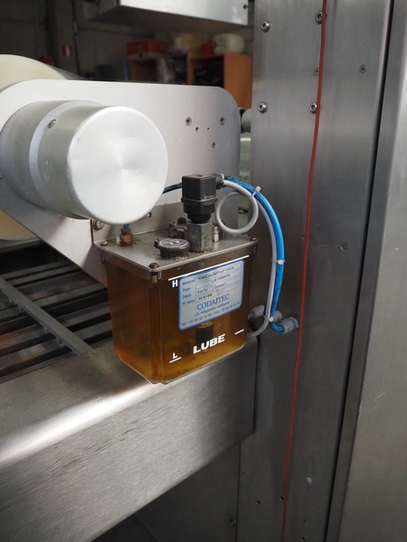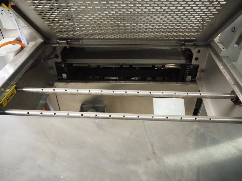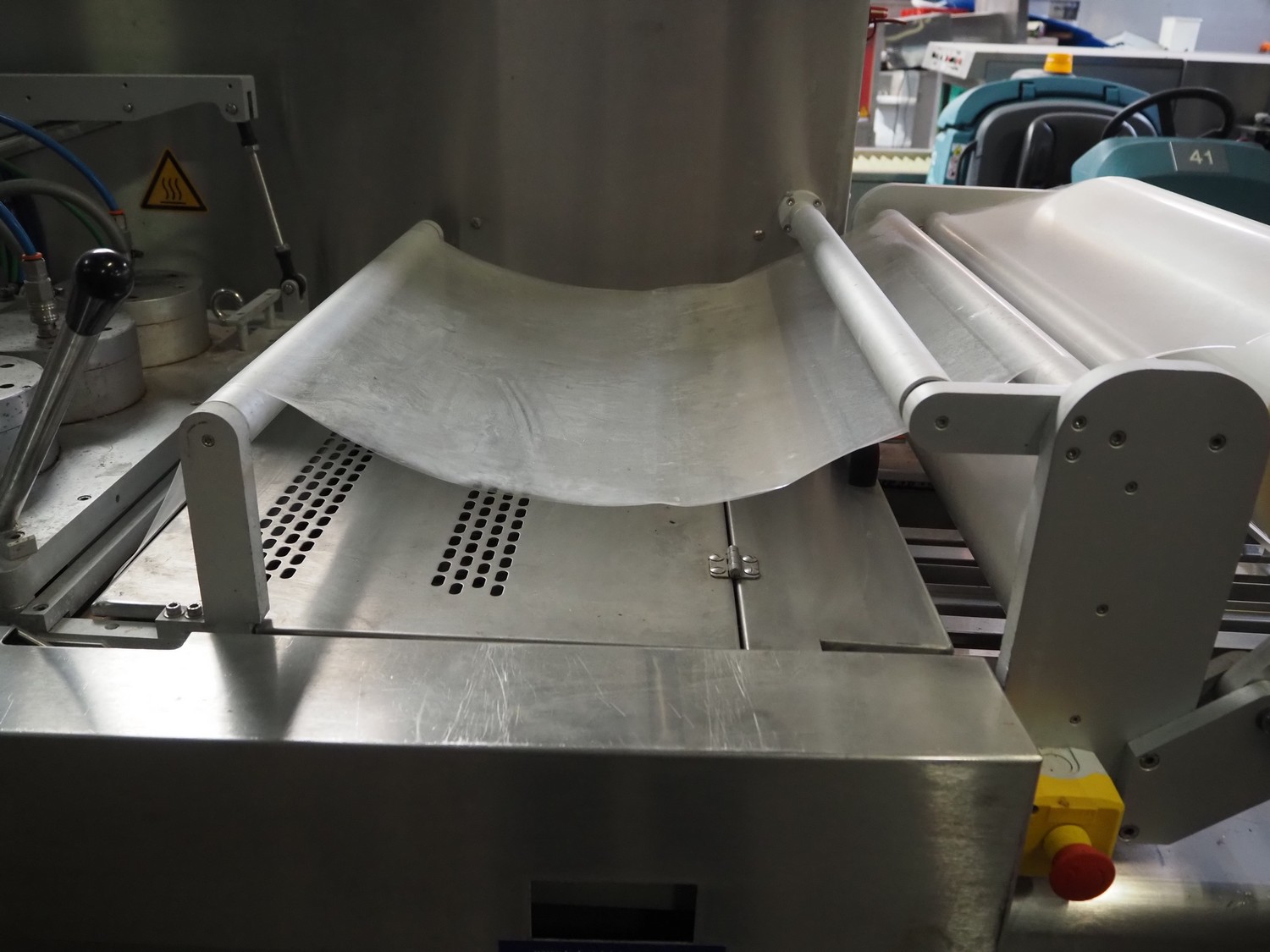 Meca Plastic traysealer, type: 2005, number: 5745, year of construction: 2004, film width: 560 mm, dimensions dye: (3x) 210 mm x 125 mm, total dimensions: 5700 mm x 1100 mm x 2100 mm. Rollies not included.