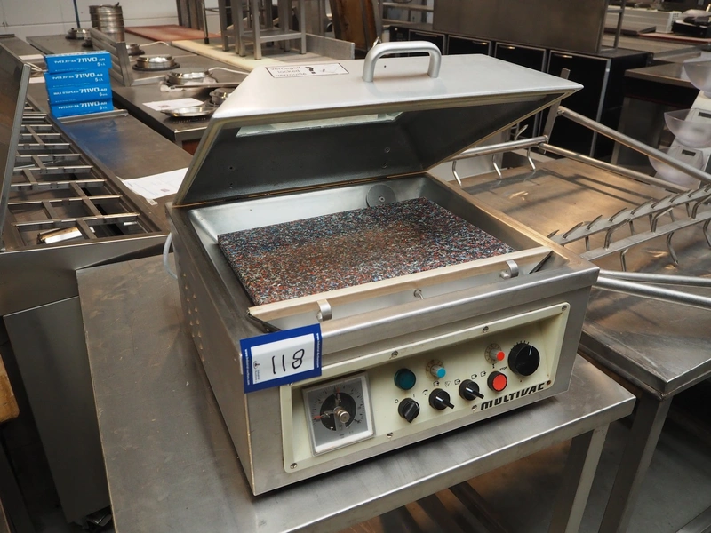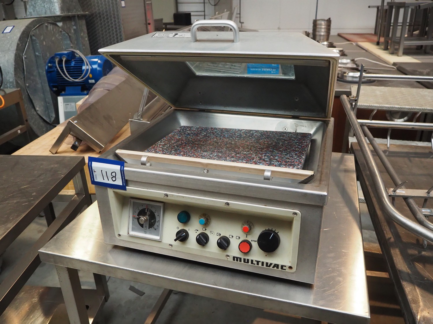 Multivac vacuum machine, type: A 300/16, machine number: 3930, 400 V, 3 Ph, 50 Hz, 3.8 A, 0.8 kW, chamber dimensions: 430 mm x 330 mm, seal length: 490 mm, total dimensions: 560 mm x 520 mm x 400 mm.