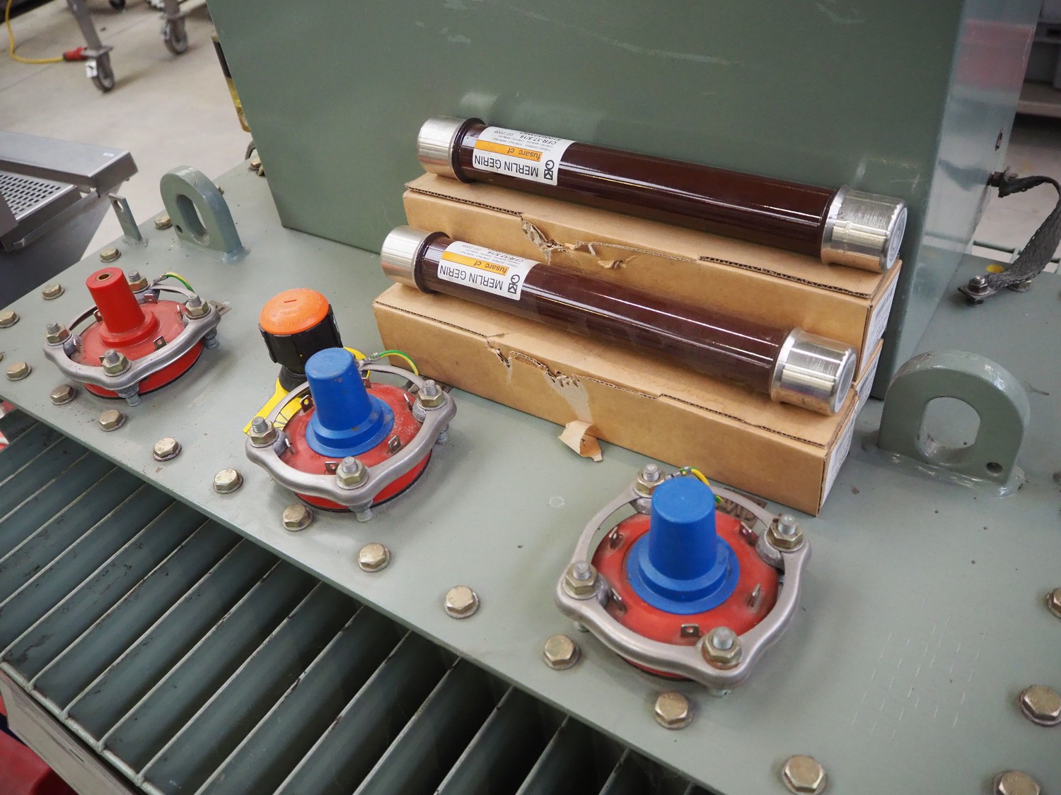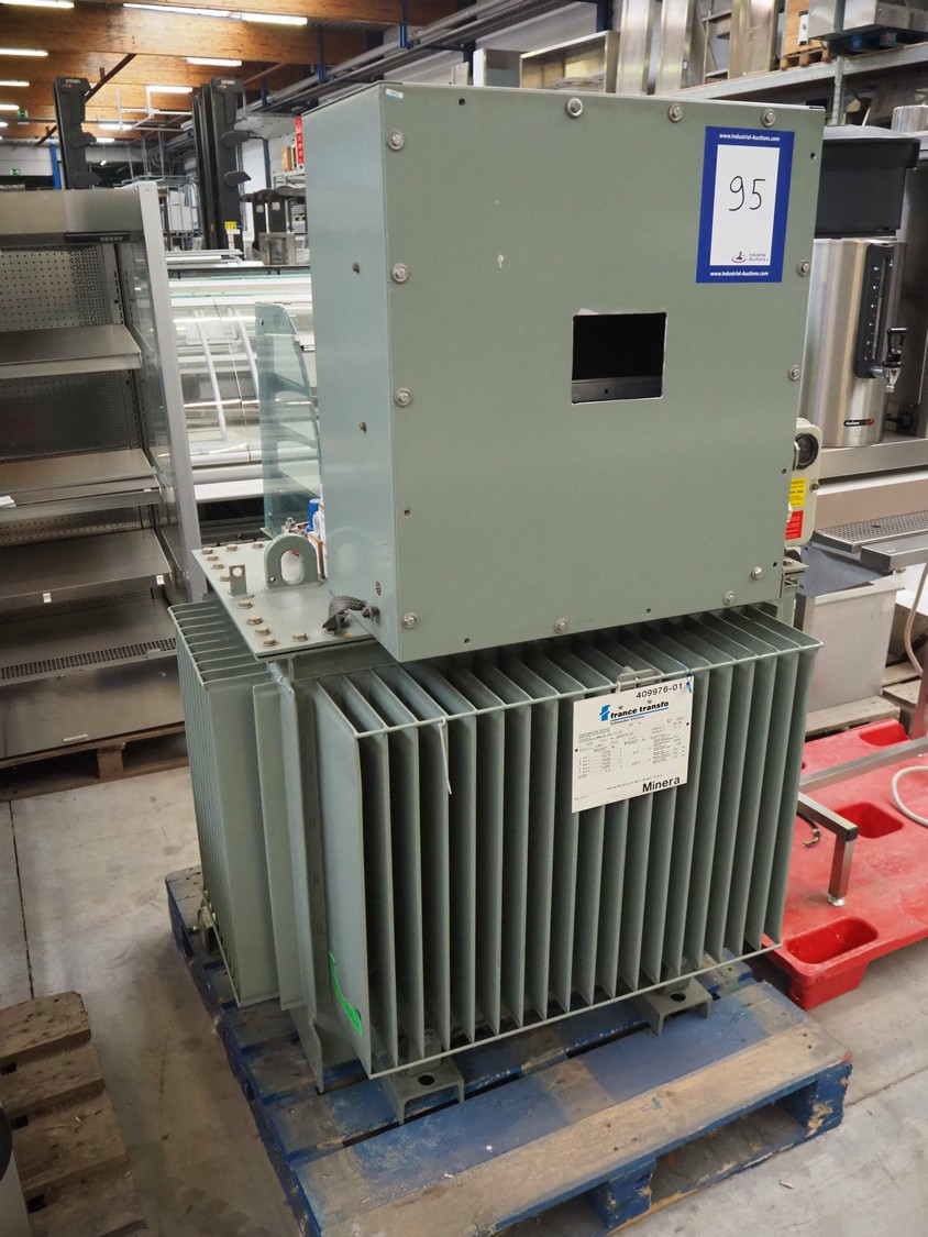 France Transfo mobile transformer, type: NBN HD 428.1 S1 -CC', serial number: 409976-01, year of construction: 2006, 400 V, 225.3 A, weight: 915 kg, 160 kVA, dimensions: 800 mm x 1100 mm x 1380 mm.