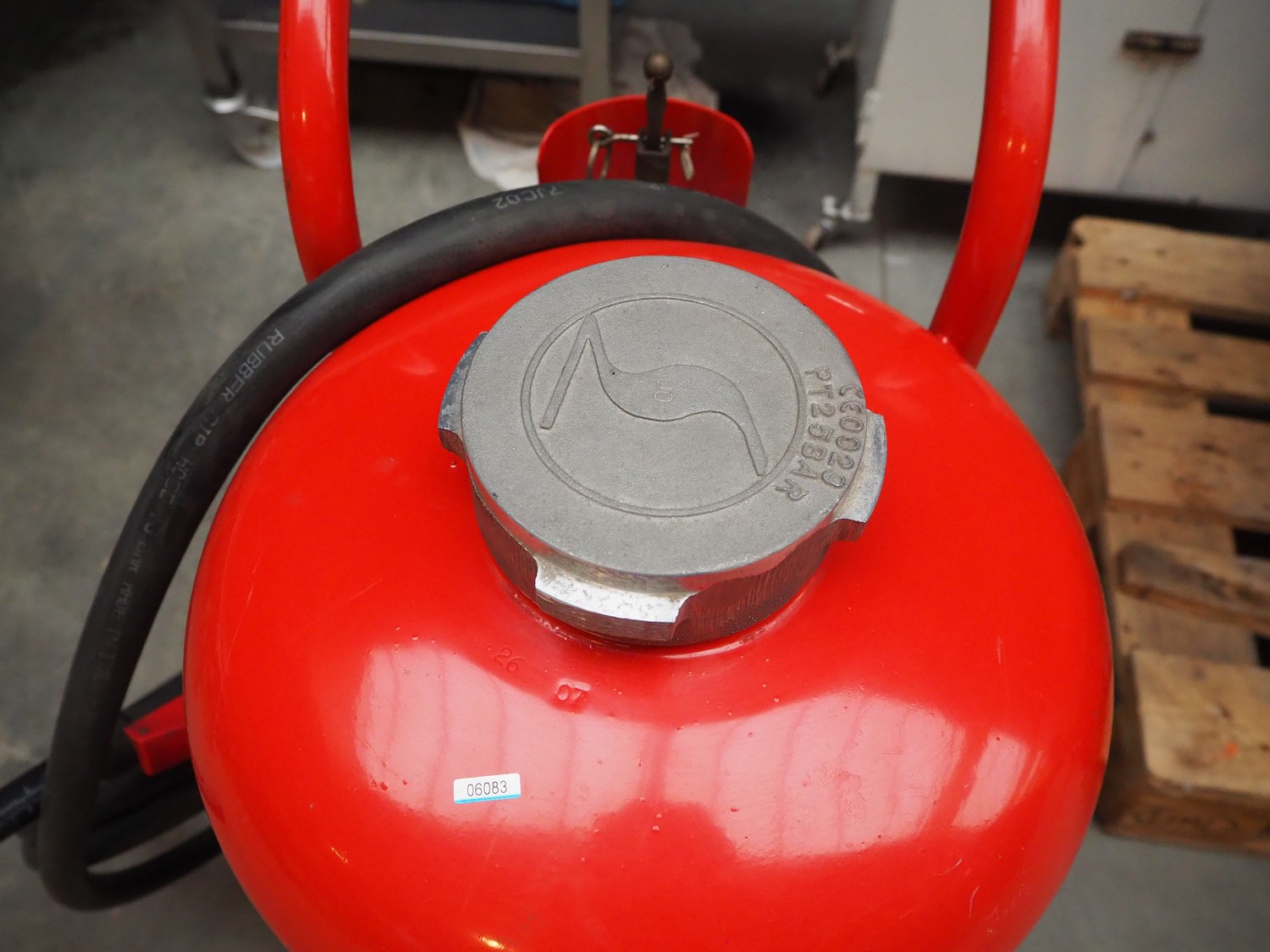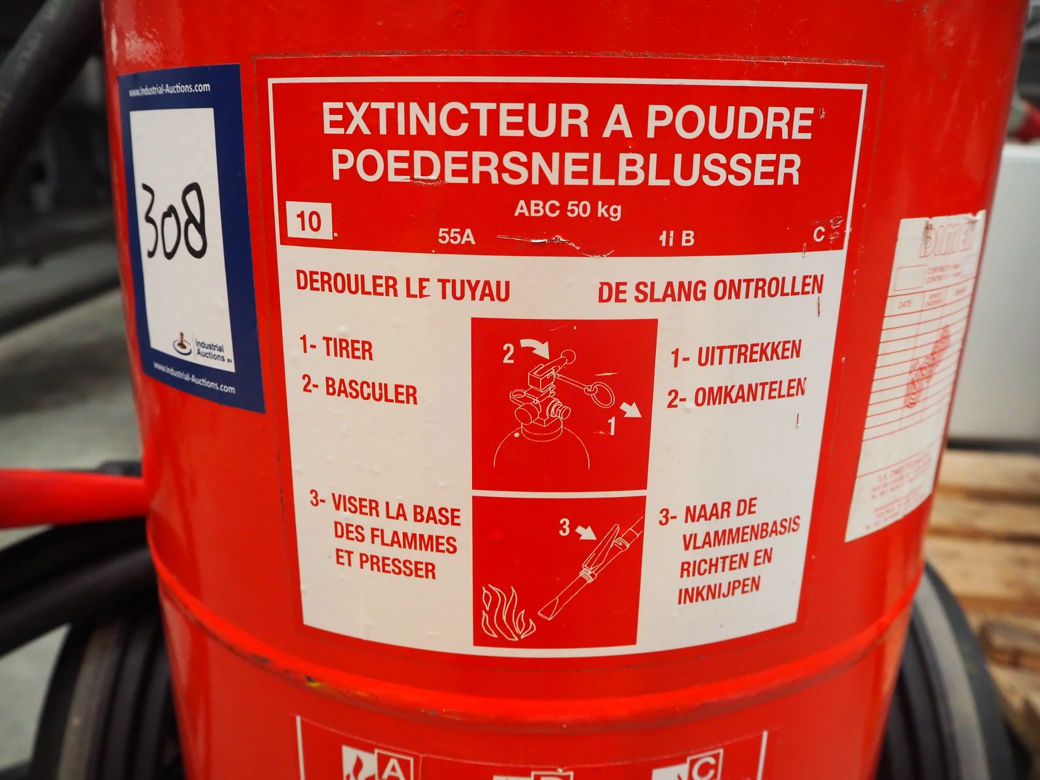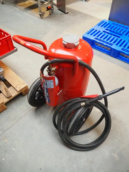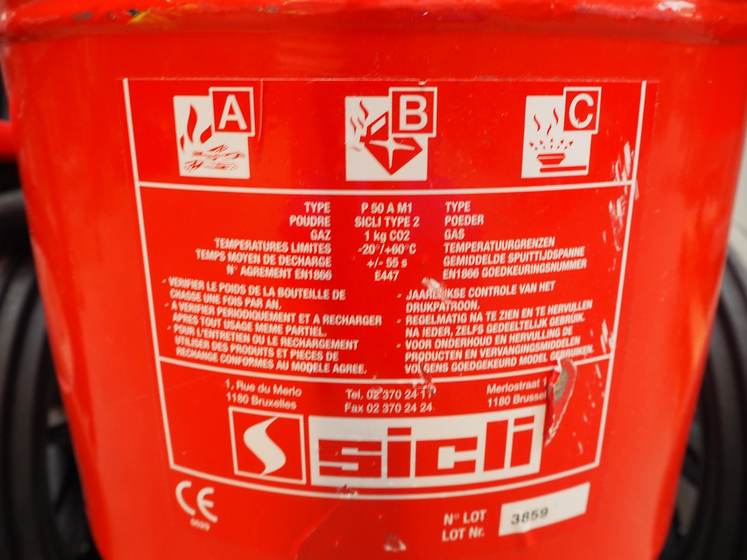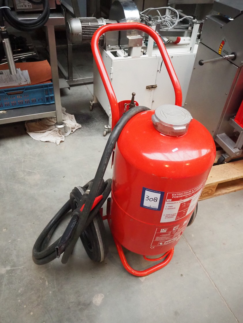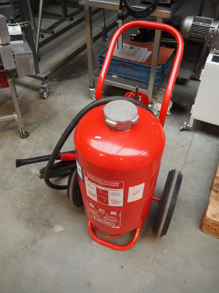 Sicli powder fire extinguisher, type: P 50 A M 1, dimensions: 600 mm x 600 mm x 1000 mm.