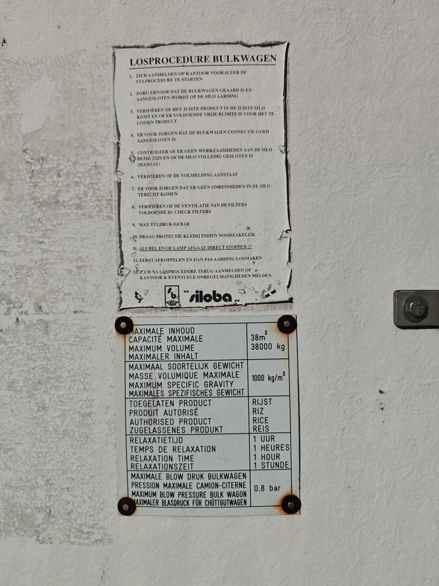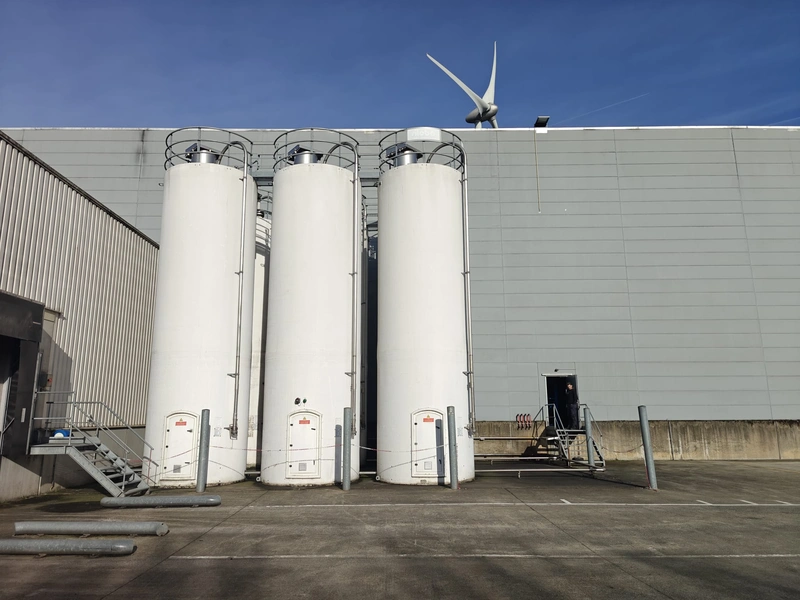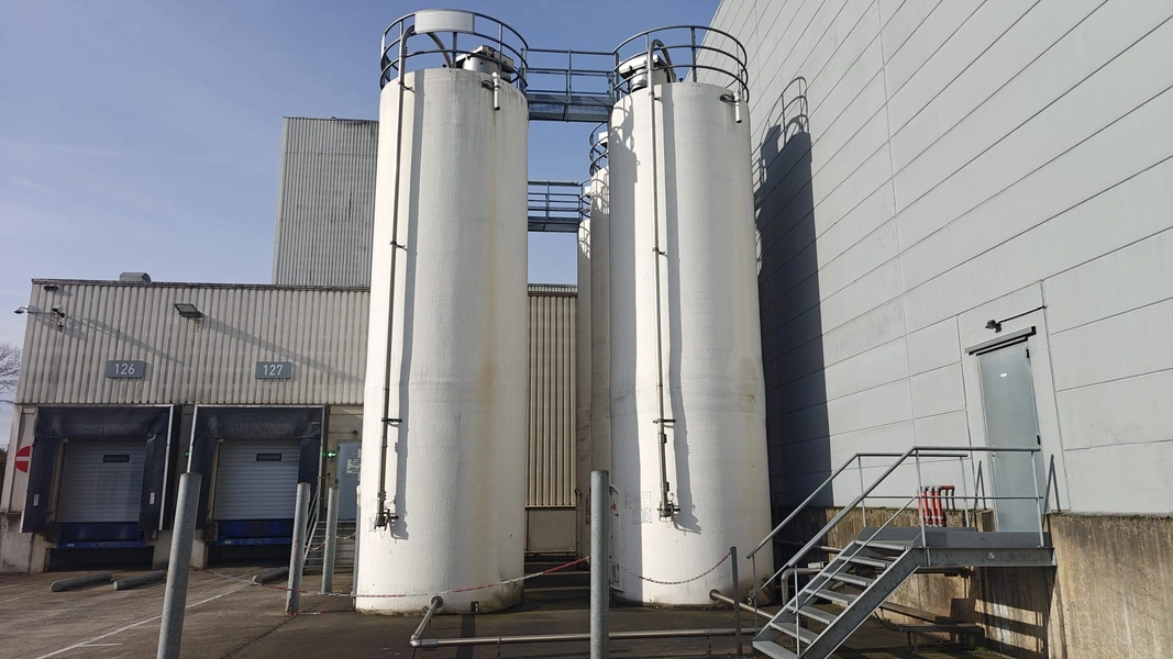 6 Siloba silo's for rice with build-in weighing cell, maximum volume: 38 m³, dimensions silo: Ø 2800 mm x 11000.